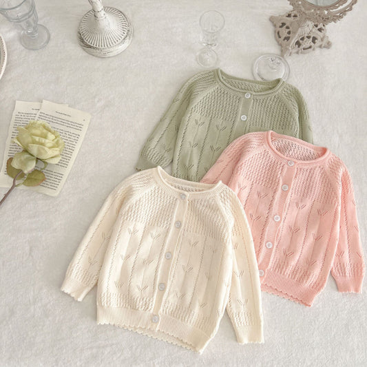 【BABY&KIDS】INS風丸襟透かし編みカーディガンSK062107