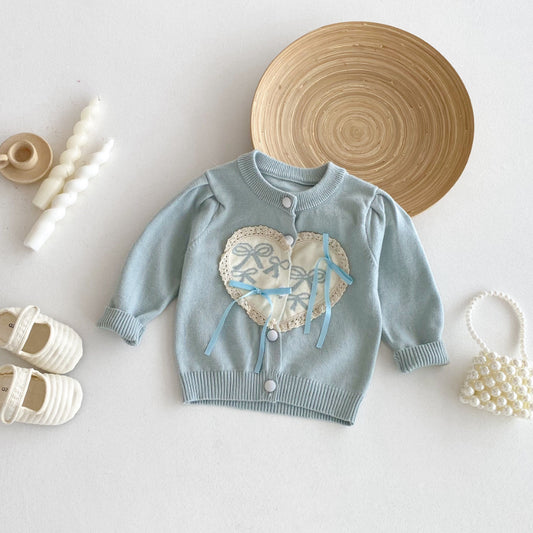 【BABY】レースハート蝶結びニットカーディガンSK092423