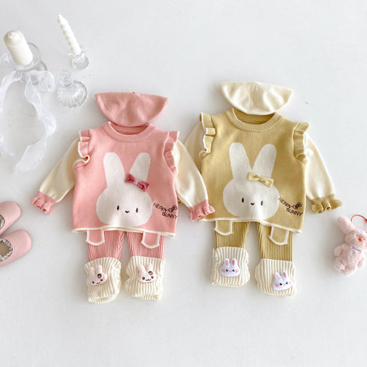 【BABY】ジャカードニットトップス&PPパンツ&帽子SK100611