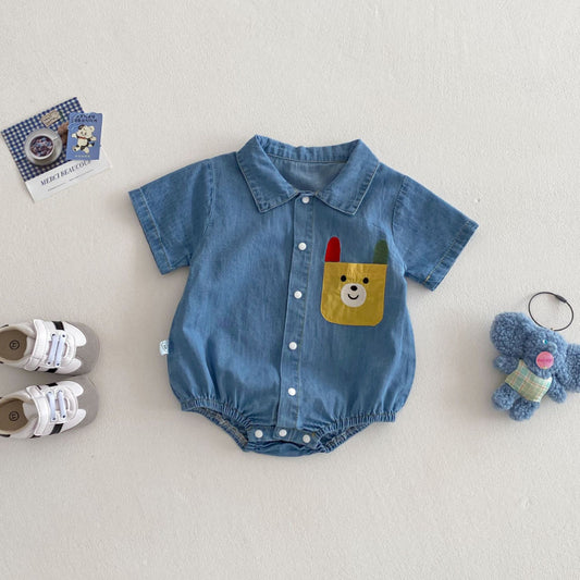 【BABY】夏新作 ポケット付きカートゥーンロンパースSK070107