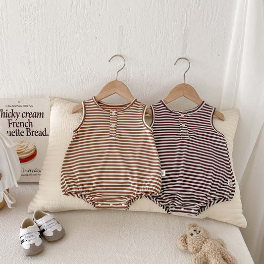 【BABY】夏新作 ノースリーブストライプベビーロンパースSK062716