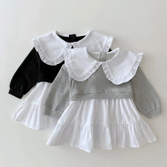 【BABY&KIDS】折り襟バイカラー重ね着風長袖ワンピースSK060613