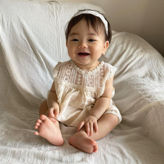 【BABY】夏新作 レース花梭織コットンノースリーブロンパースSK071901