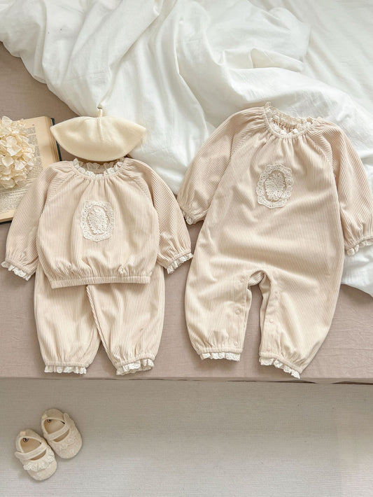 【BABY】韓国風 シンプル系プリンセスロンパース/セットアップSK060115