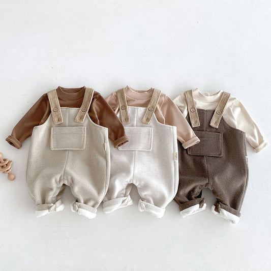 【BABY&KID】冬新作冬新作フリースポケット付けサロペット&インナーシャツ2点セットSK11418