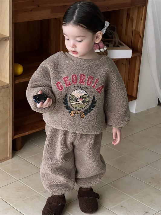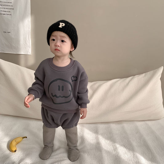 【BABY&KID】冬新作起毛英字プリントセットアップ 全2色SK11332