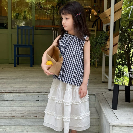【BABY&KID】夏新作 ノースリーブチェックガールシャツ、無地スカートSK092632
