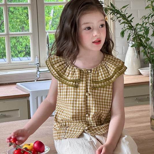 【BABY&KID】夏新作 フリル襟チェックガールシャツSK092631