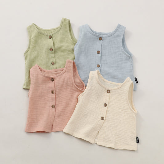 【BABY】夏新作 北欧風ガーゼ風しわ加工ベビーベストSK092010
