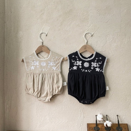 【BABY】夏新作 綿麻フラワー刺繍ロンパースSK091115