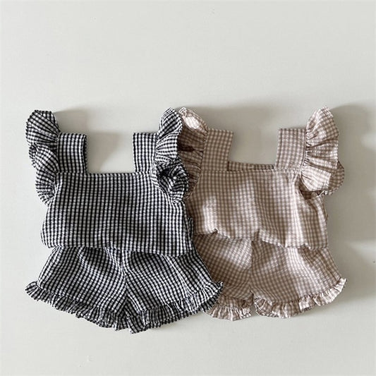 【BABY】夏新作 フリル袖チェックドールシャツセットアップSK071607