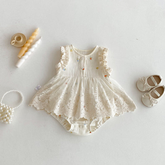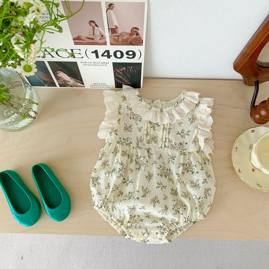 【BABY】夏新作 レースフラワー飛袖ロンパースSK061819