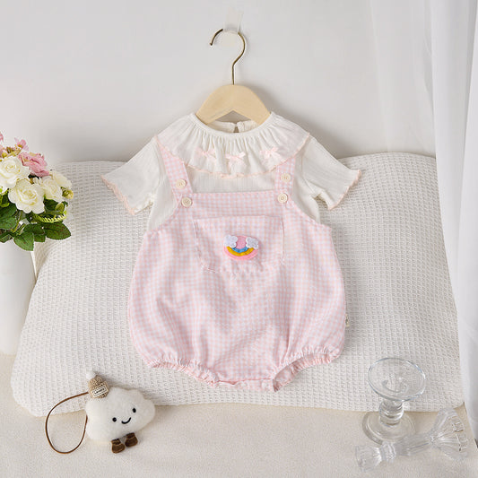 【BABY】夏新作 二重レース襟パフスリーブロンパースSK072303