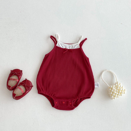 【BABY】夏新作 ラウンドネック蝶結びロンパースSK091832