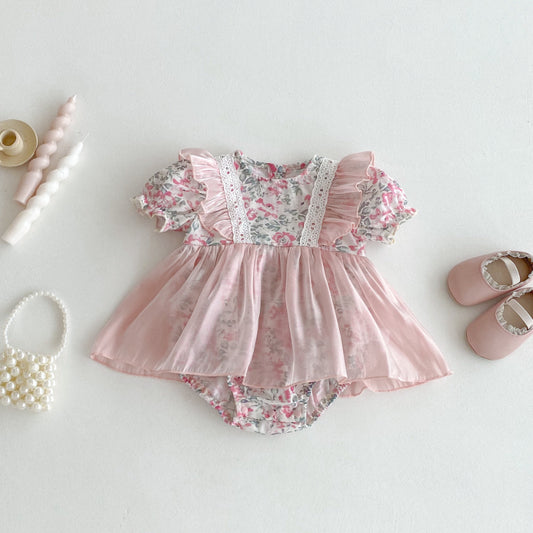 【BABY】夏新作 花柄ダブル蝶結びロンパースSK091503