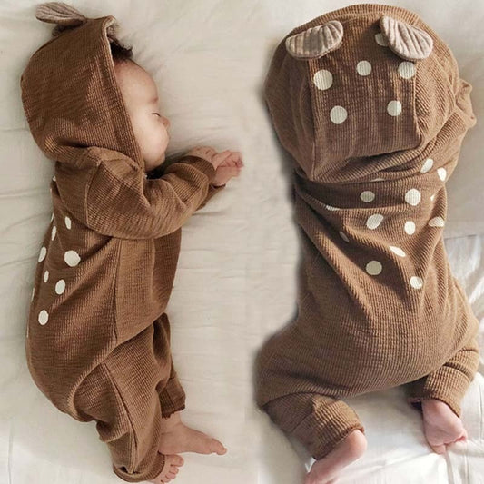 【BABY】冬新作クマ柄帽子付き起毛ロンパース 全2色SK11389