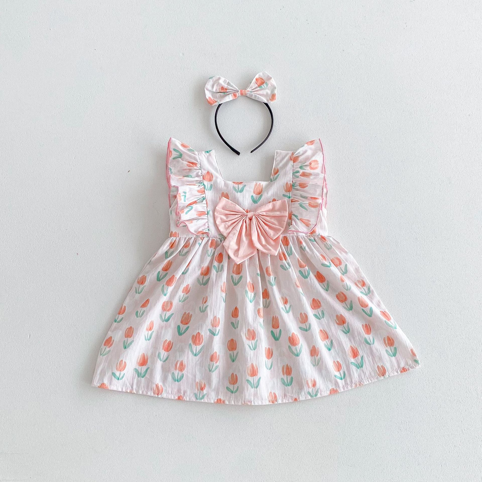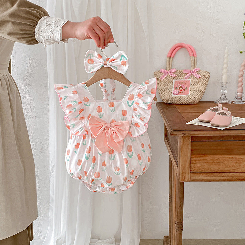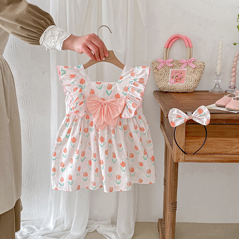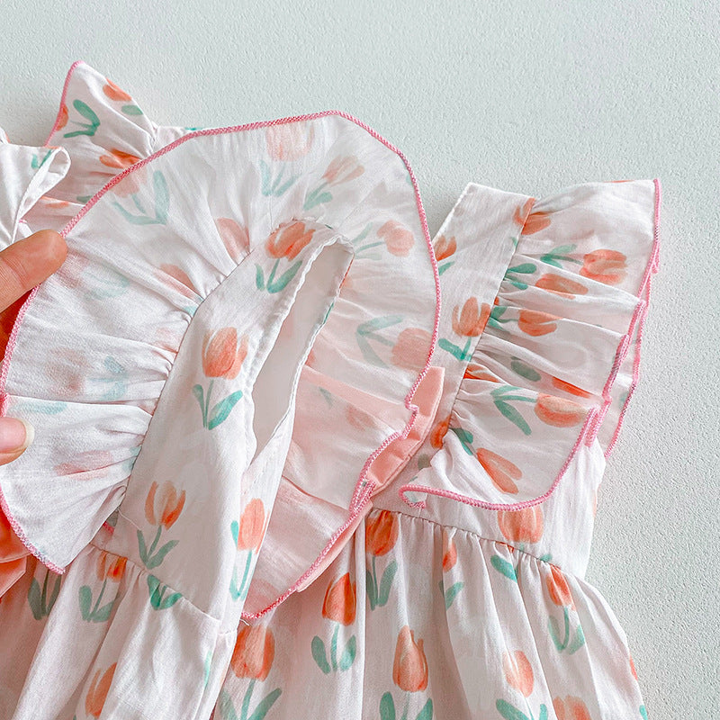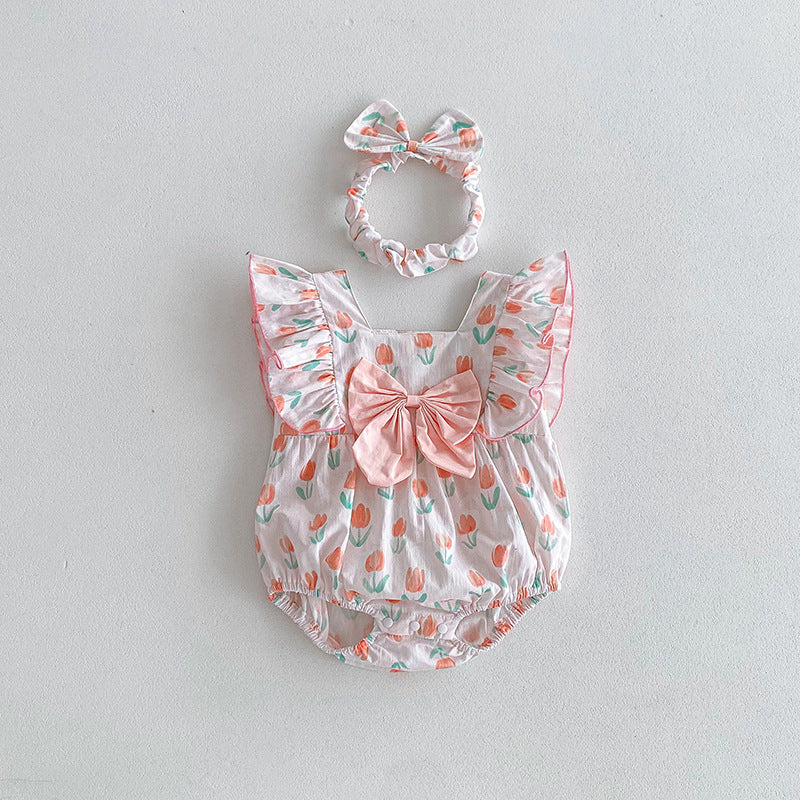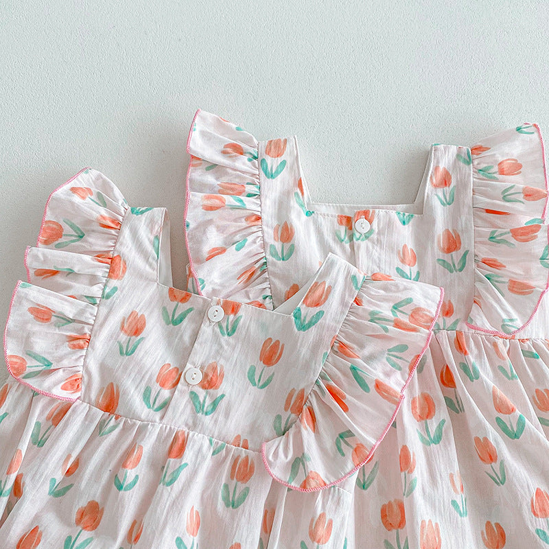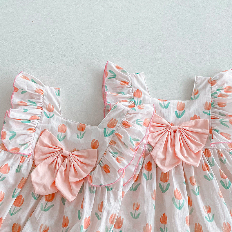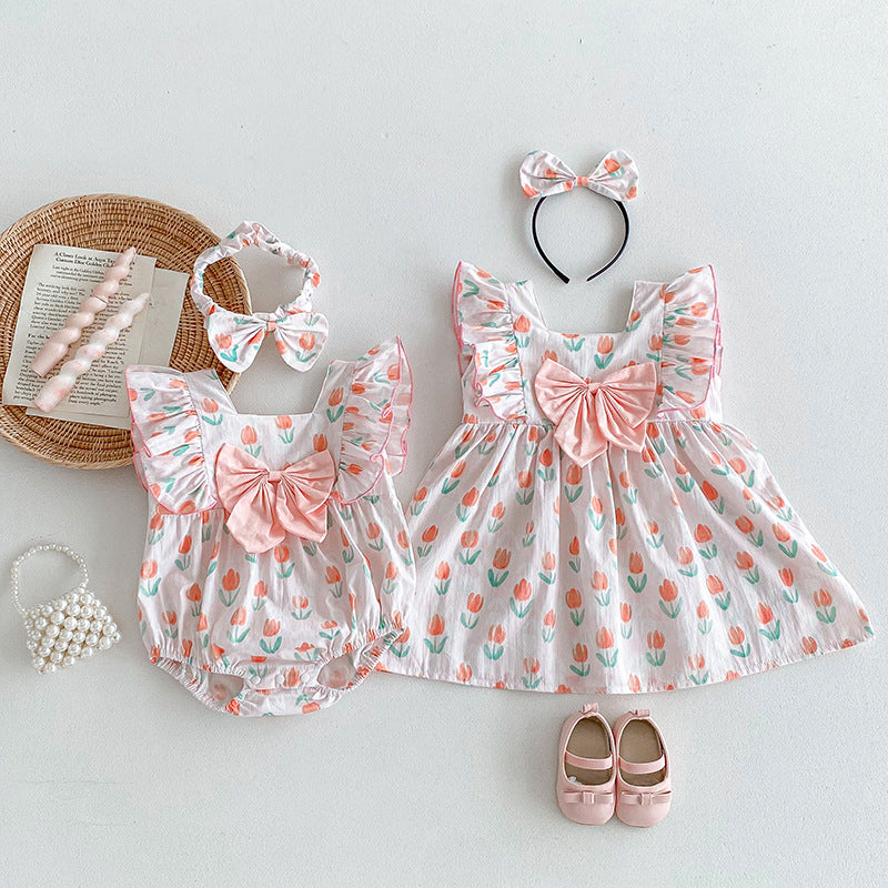 【姉妹服】夏新作 チューリップ×リボンロンパース、ワンピースSK081634