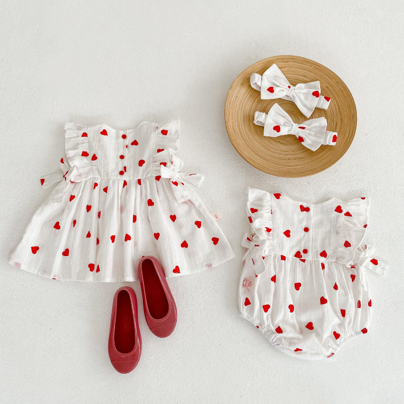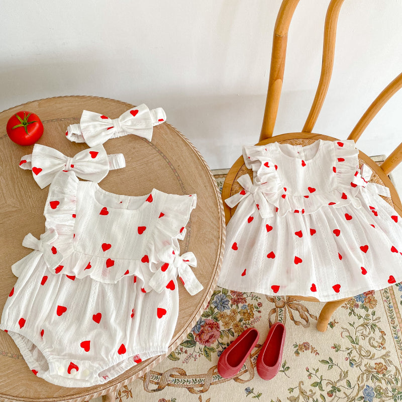【姉妹服】夏新作 ハート小飛袖ロンパース、ワンピースSK072507