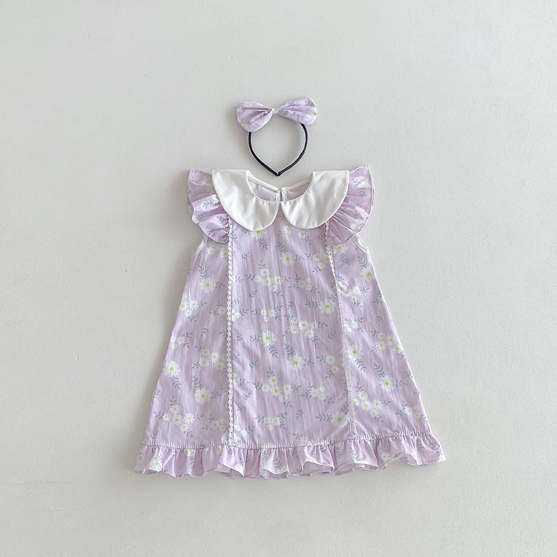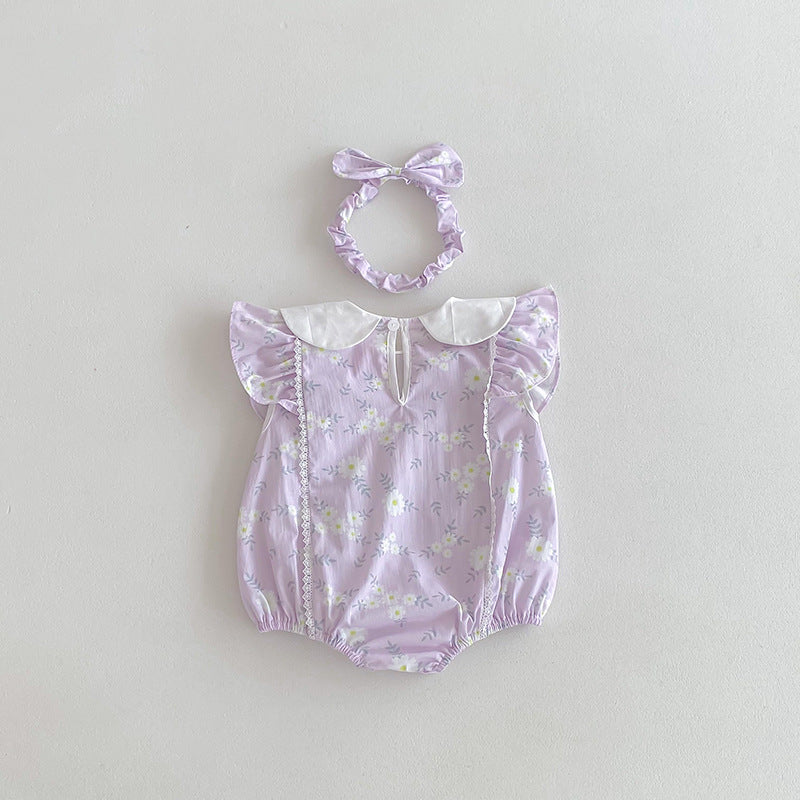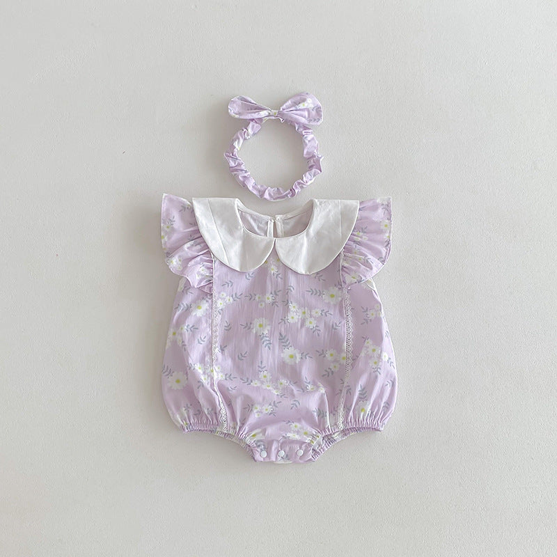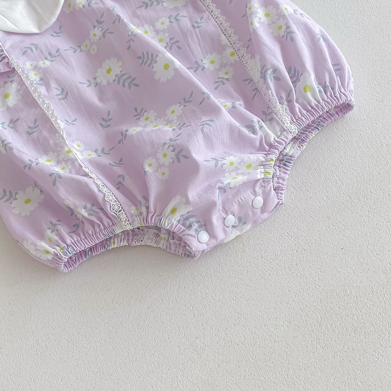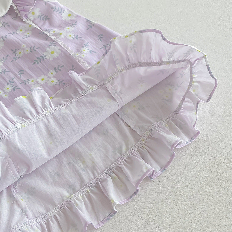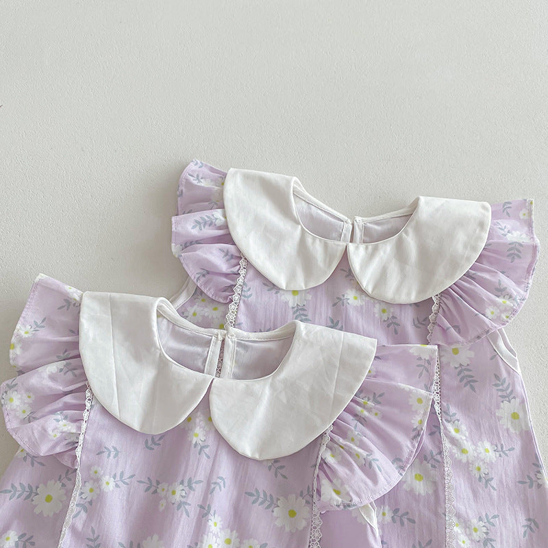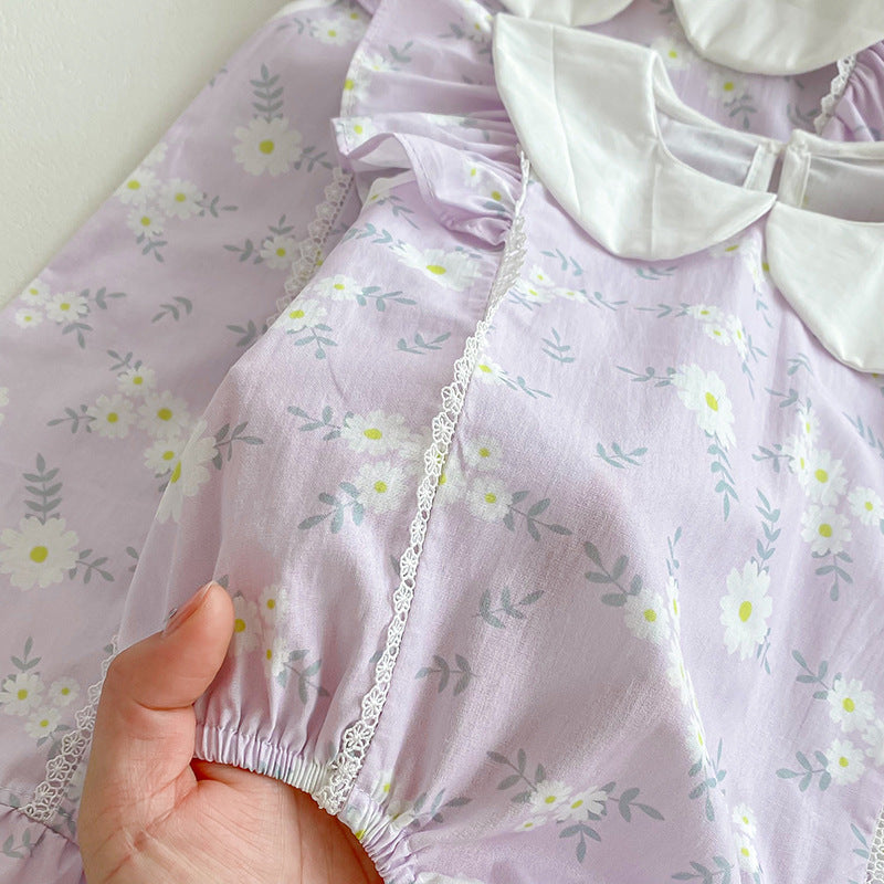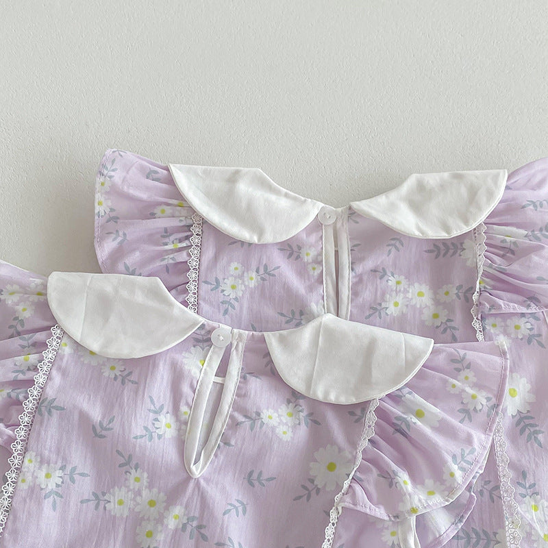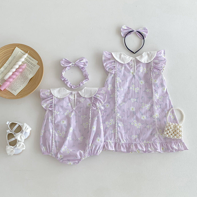 【姉妹服】夏新作 パープル小花柄ロンパース、ワンピースSK081626