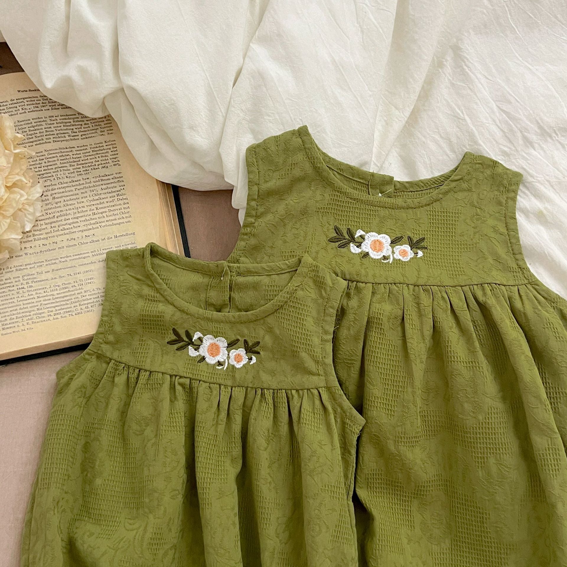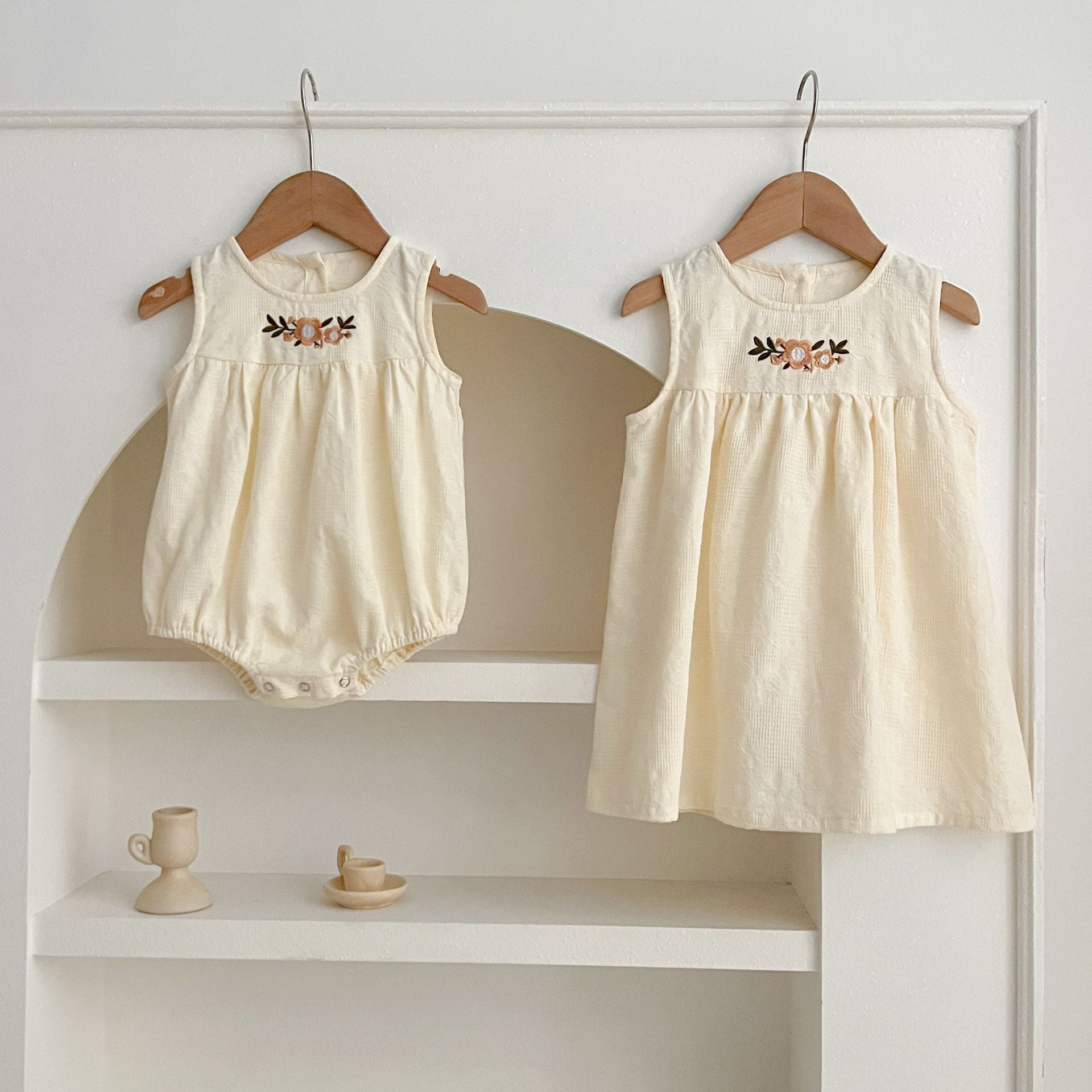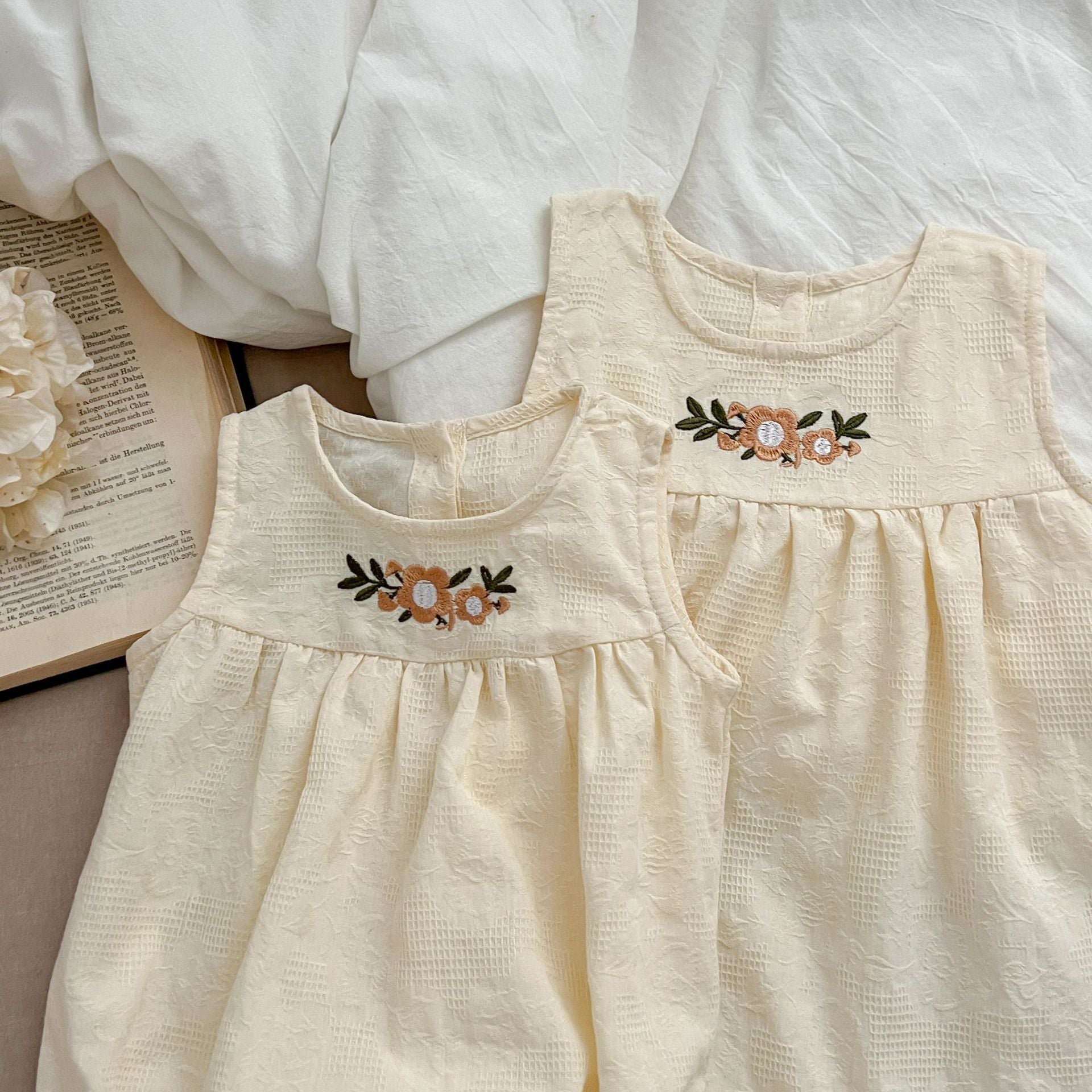 【姉妹服】夏新作 フラワー刺繍ノースリーブロンパース、ワンピースSK081625