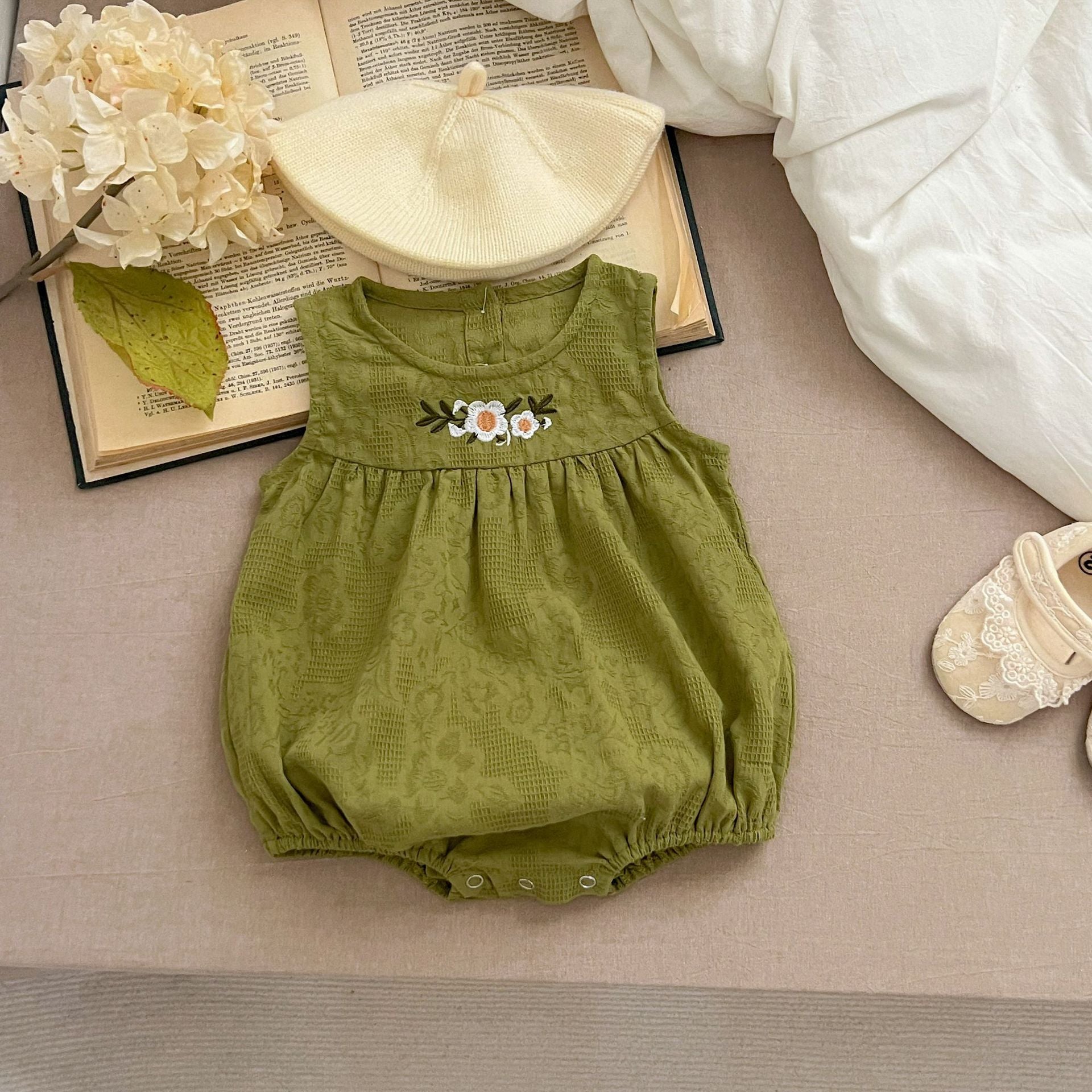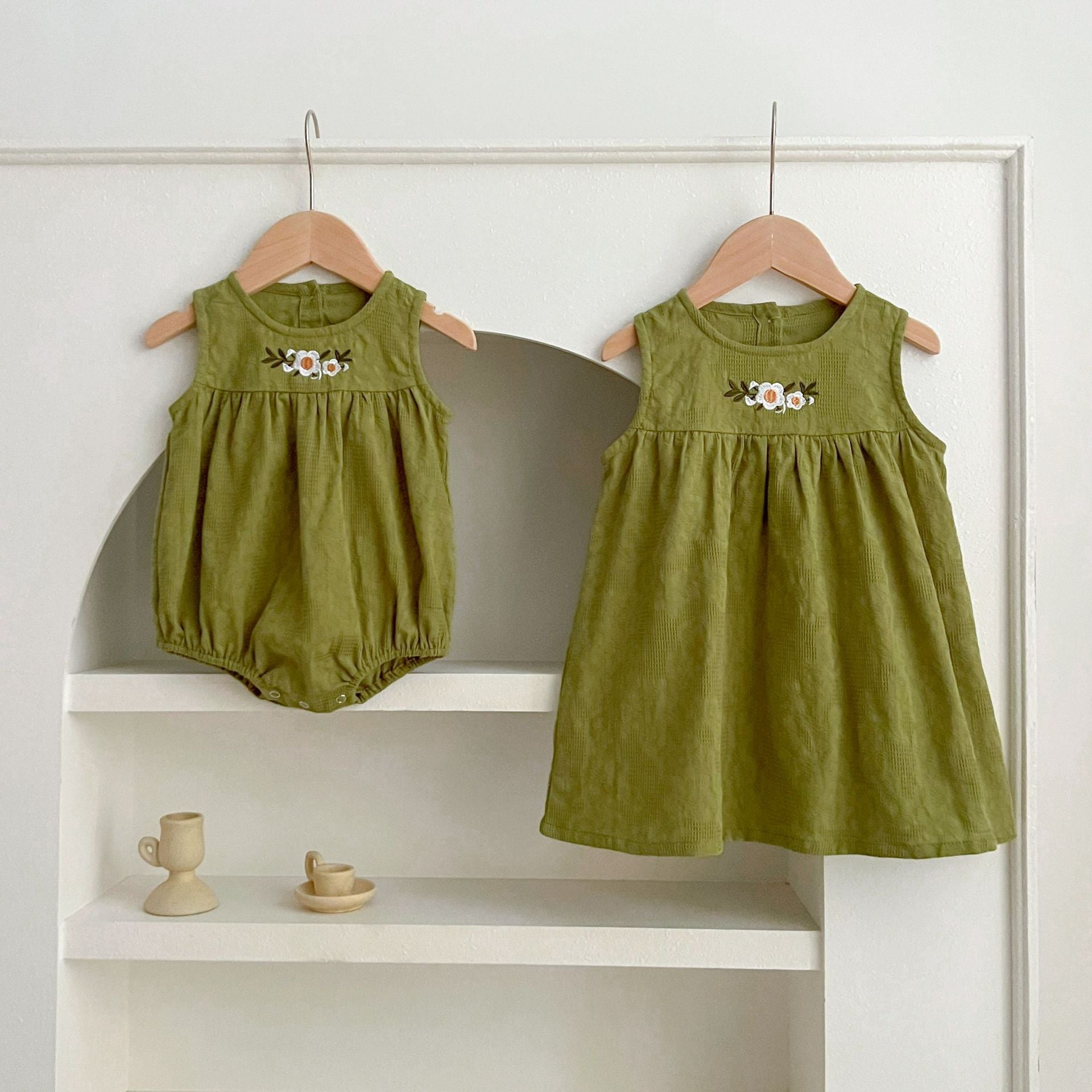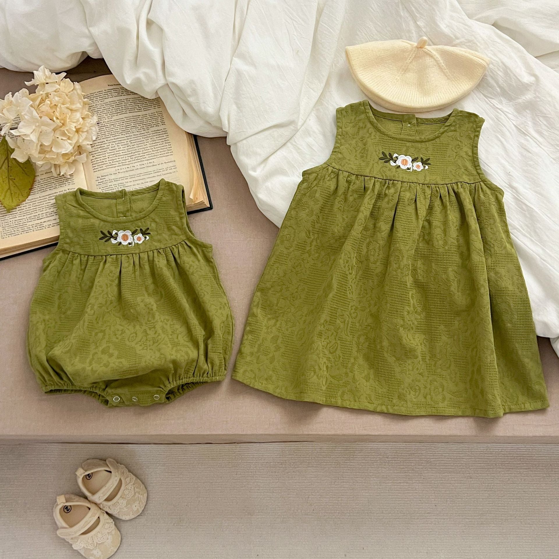 【姉妹服】夏新作 フラワー刺繍ノースリーブロンパース、ワンピースSK081625