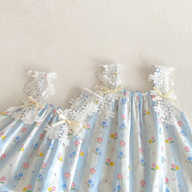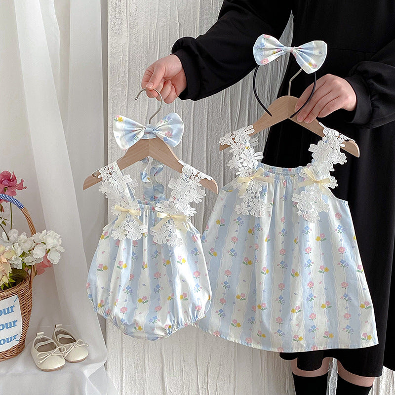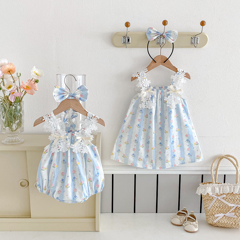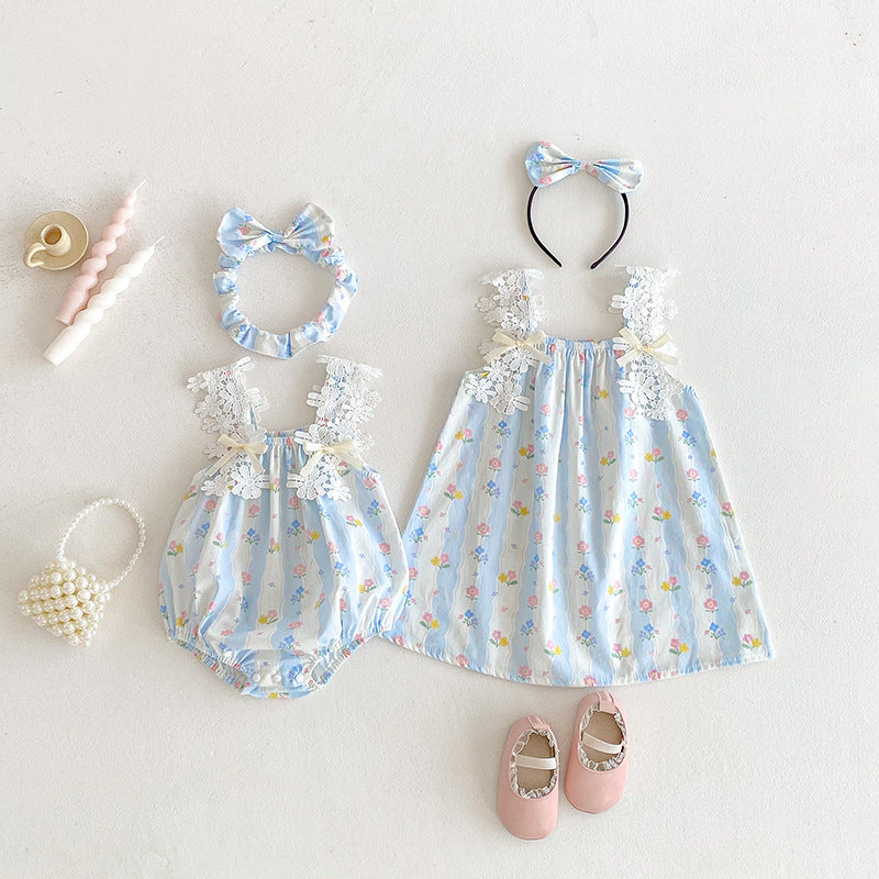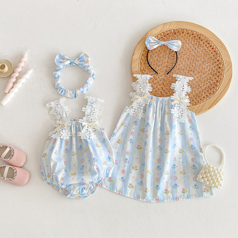 【姉妹服】夏新作 レースキャミ小花柄ロンパース、ワンピースSK081628