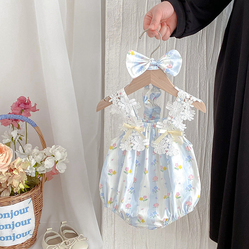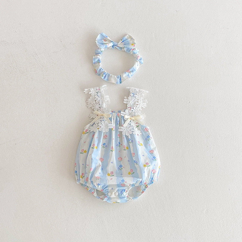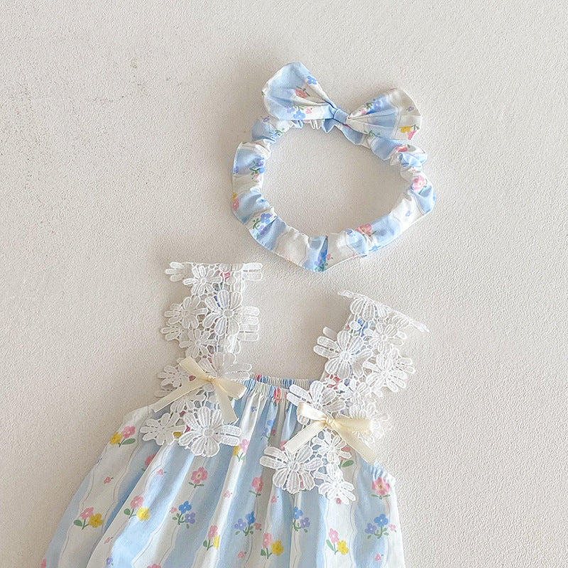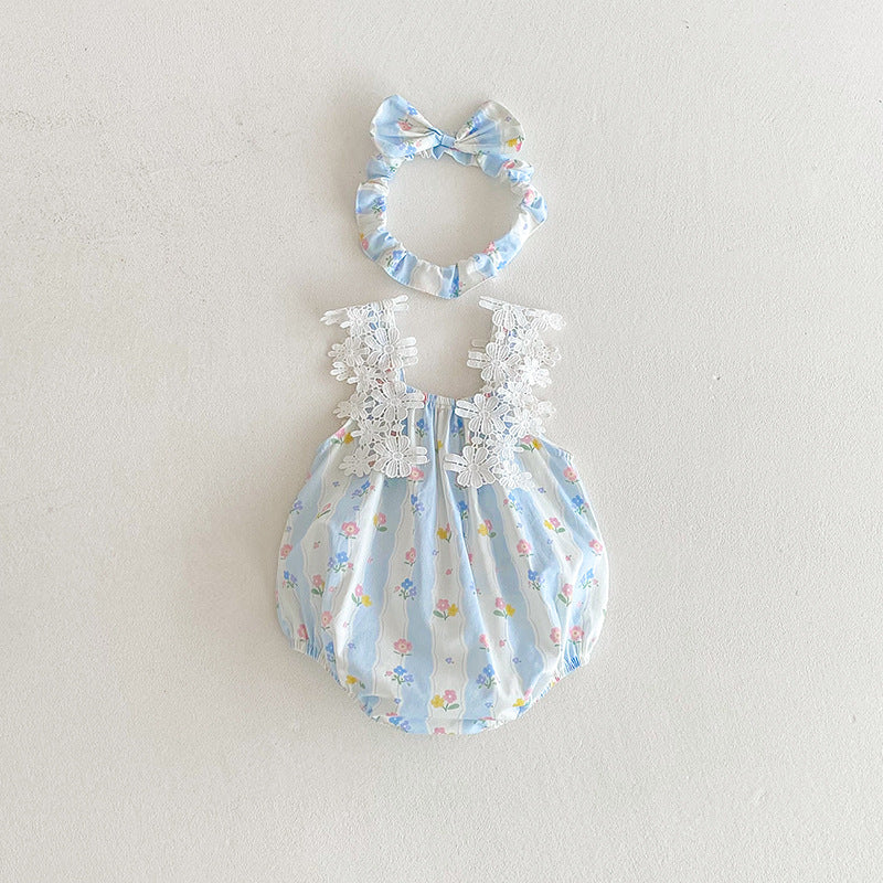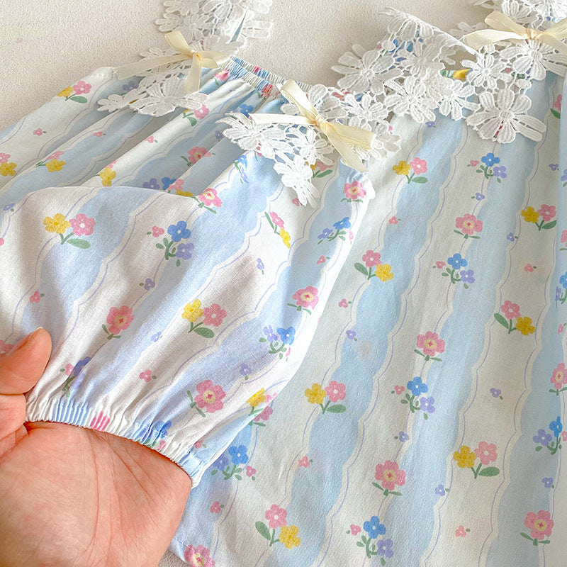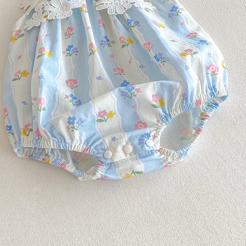 【姉妹服】夏新作 レースキャミ小花柄ロンパース、ワンピースSK081628