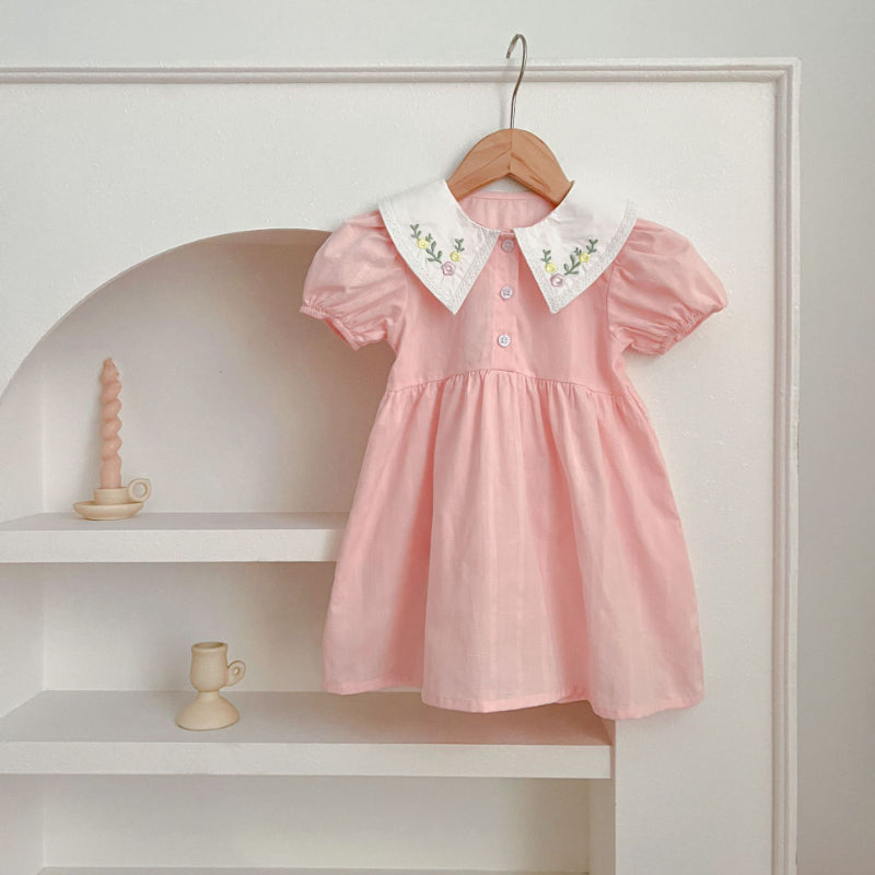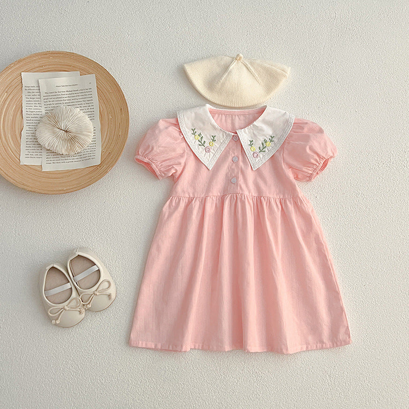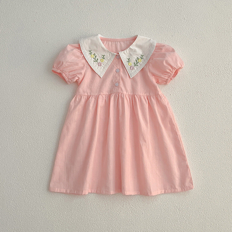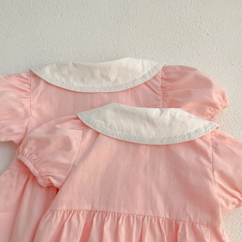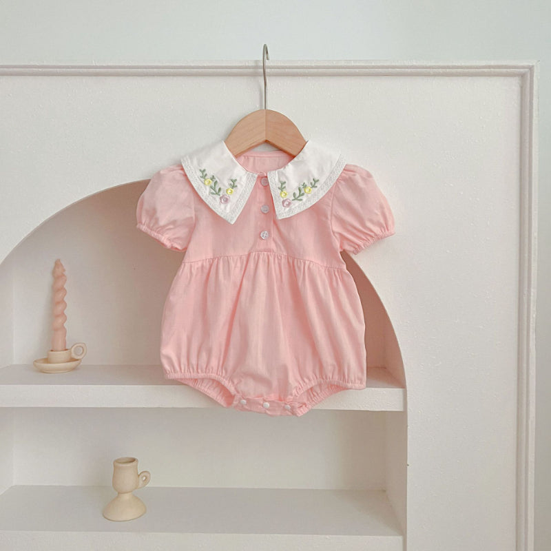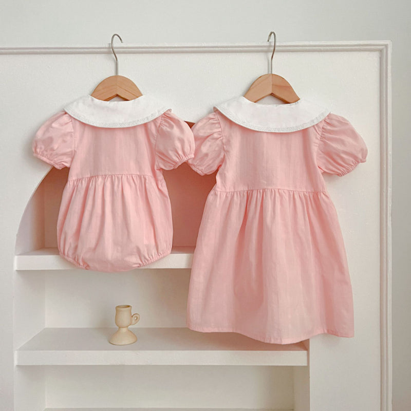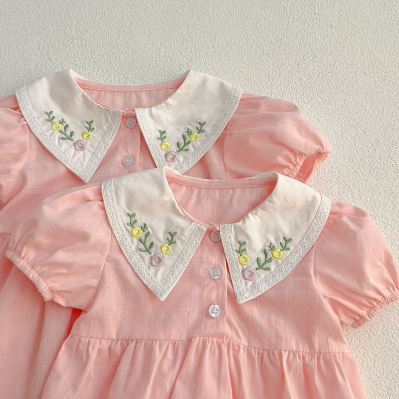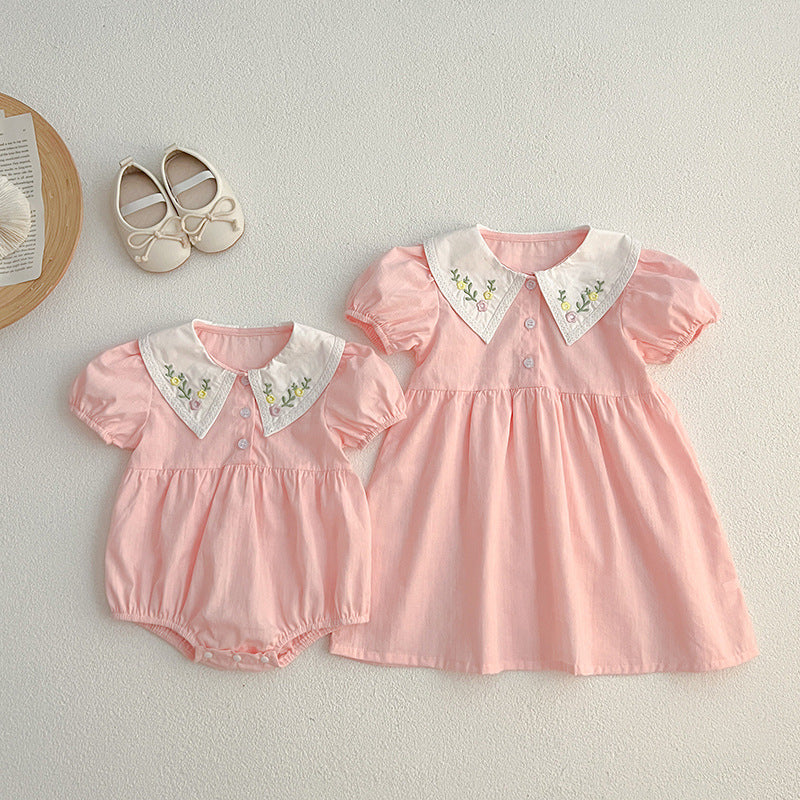 【姉妹服】夏新作 刺繍フラワー襟ロンパース、ワンピースSK081621