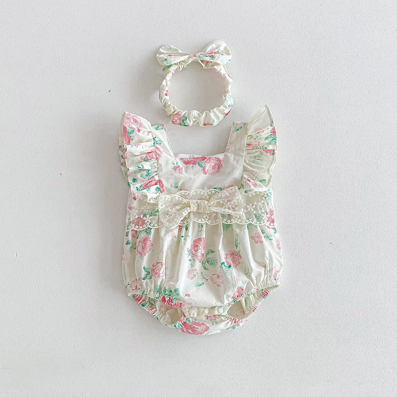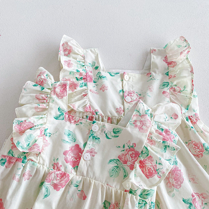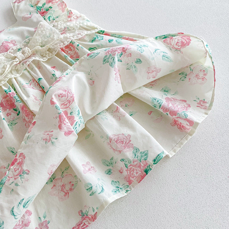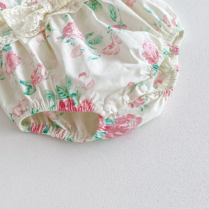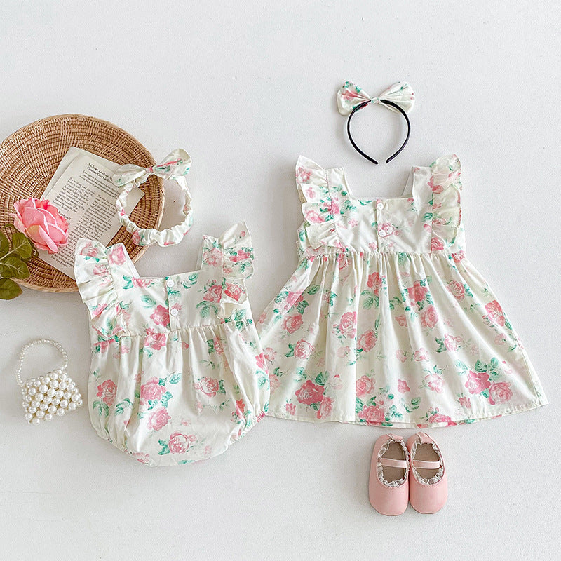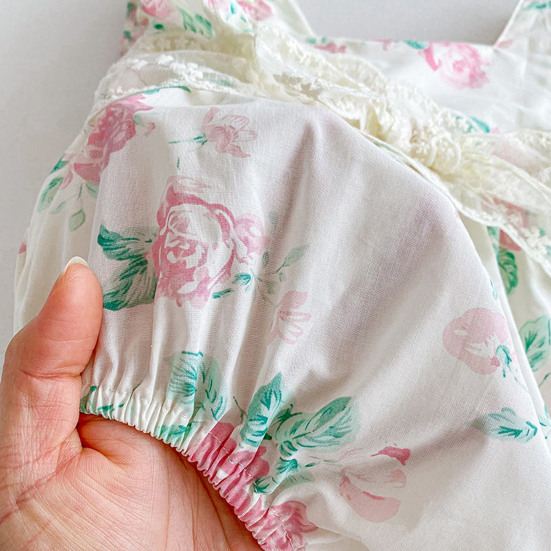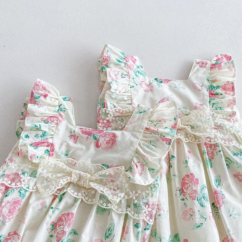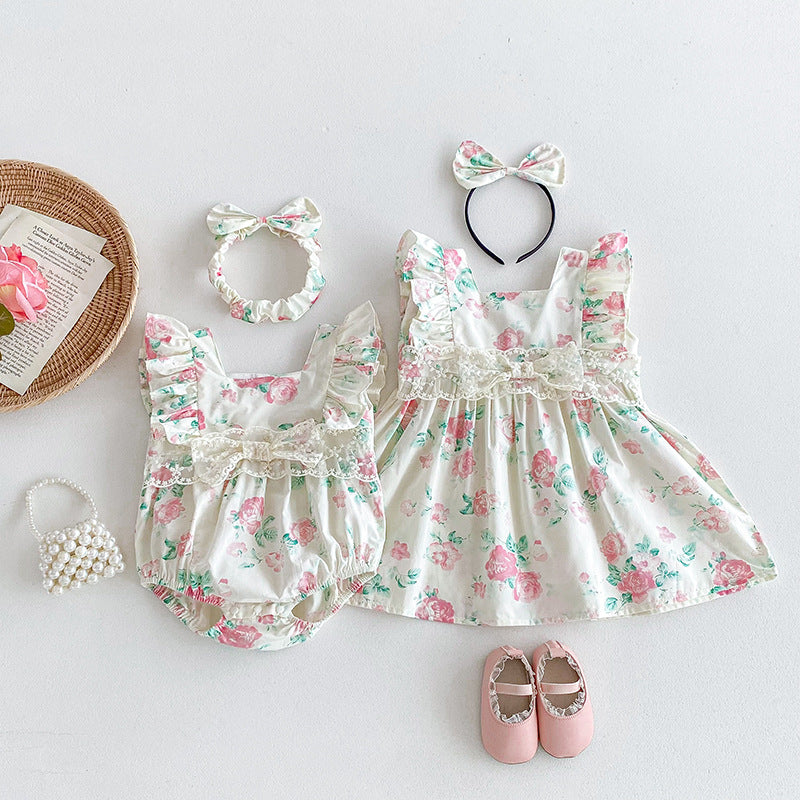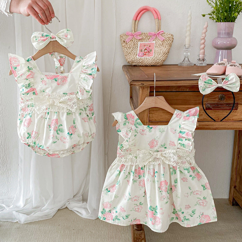 【姉妹服】夏新作 小花柄レースロンパース、ワンピースSK081631