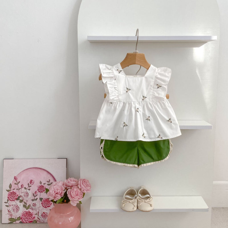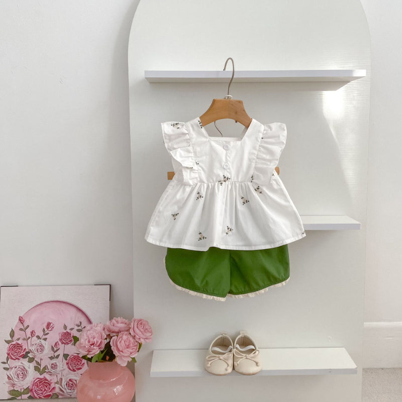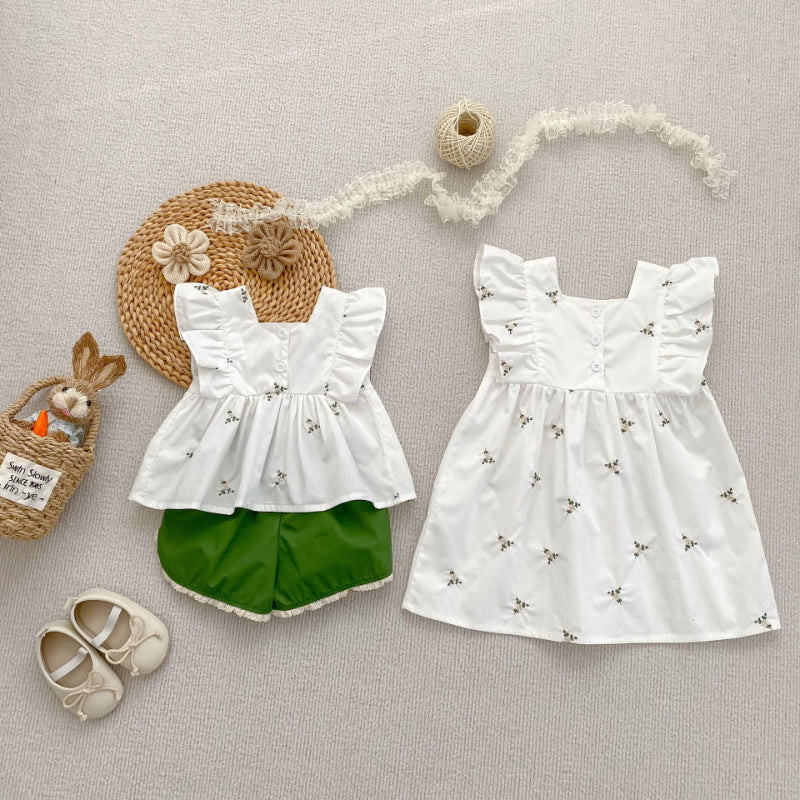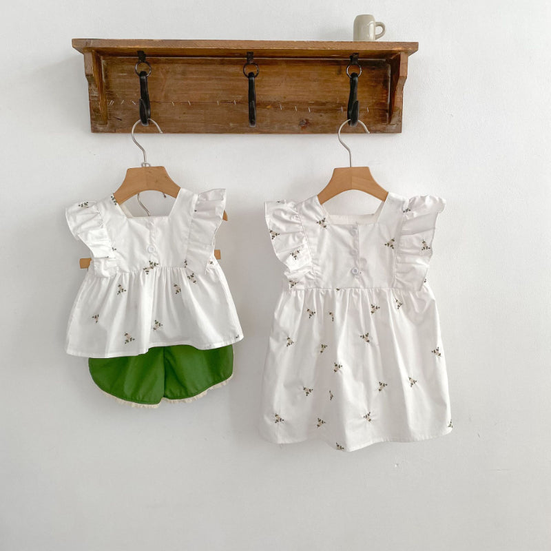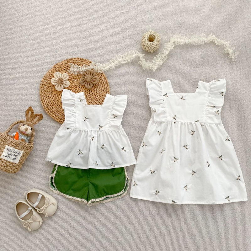 【姉妹服】夏新作 花柄フリルセットアップ/ワンピースSK071017