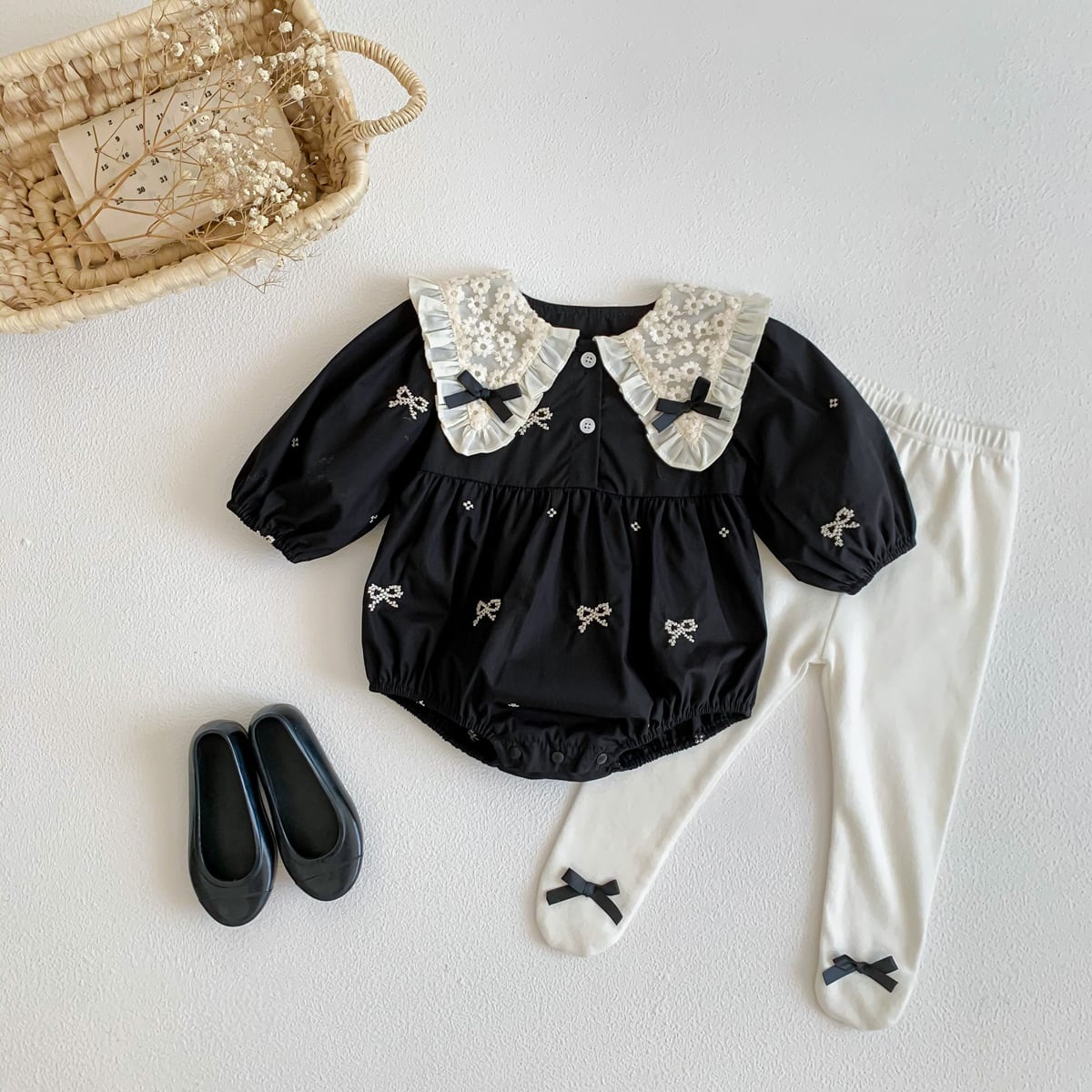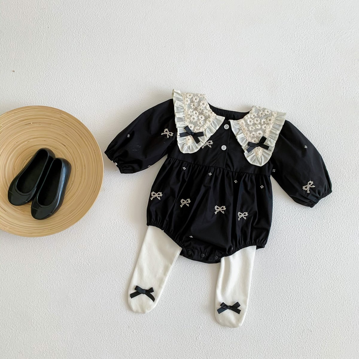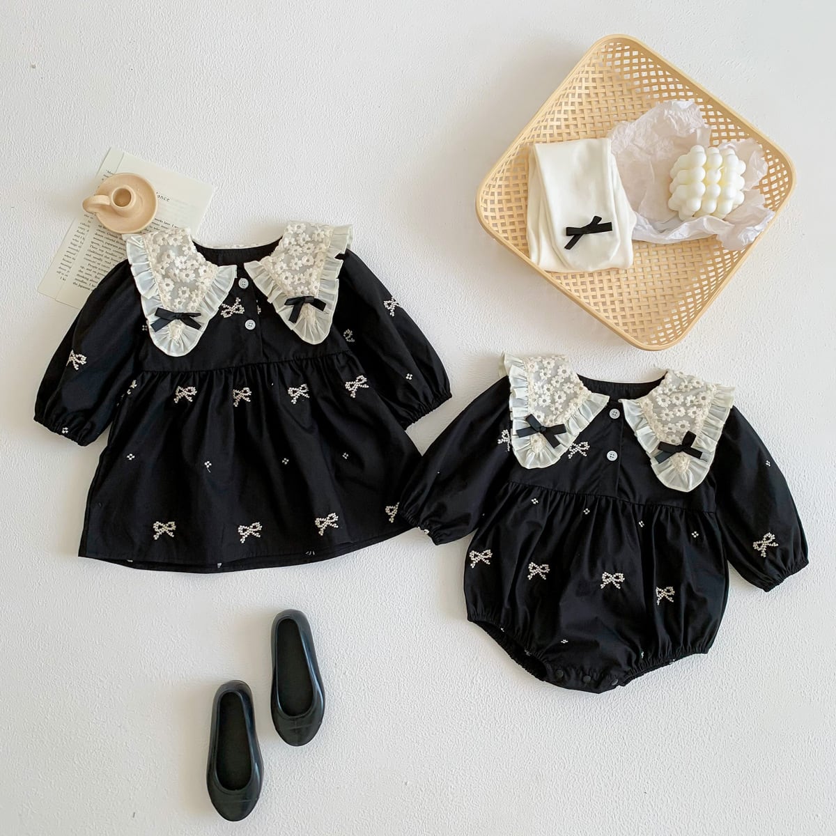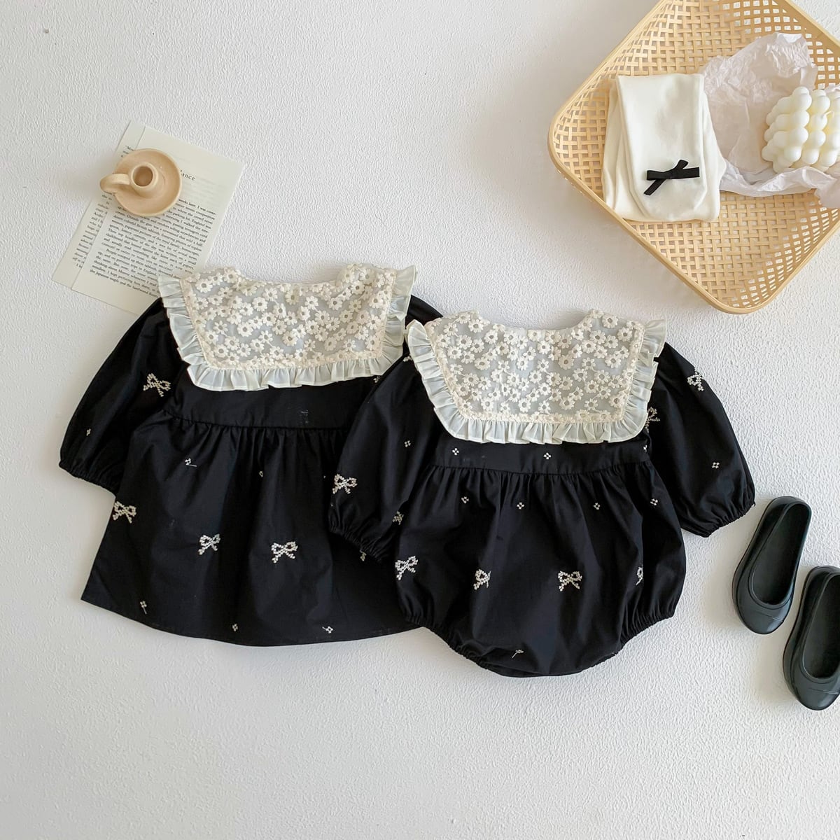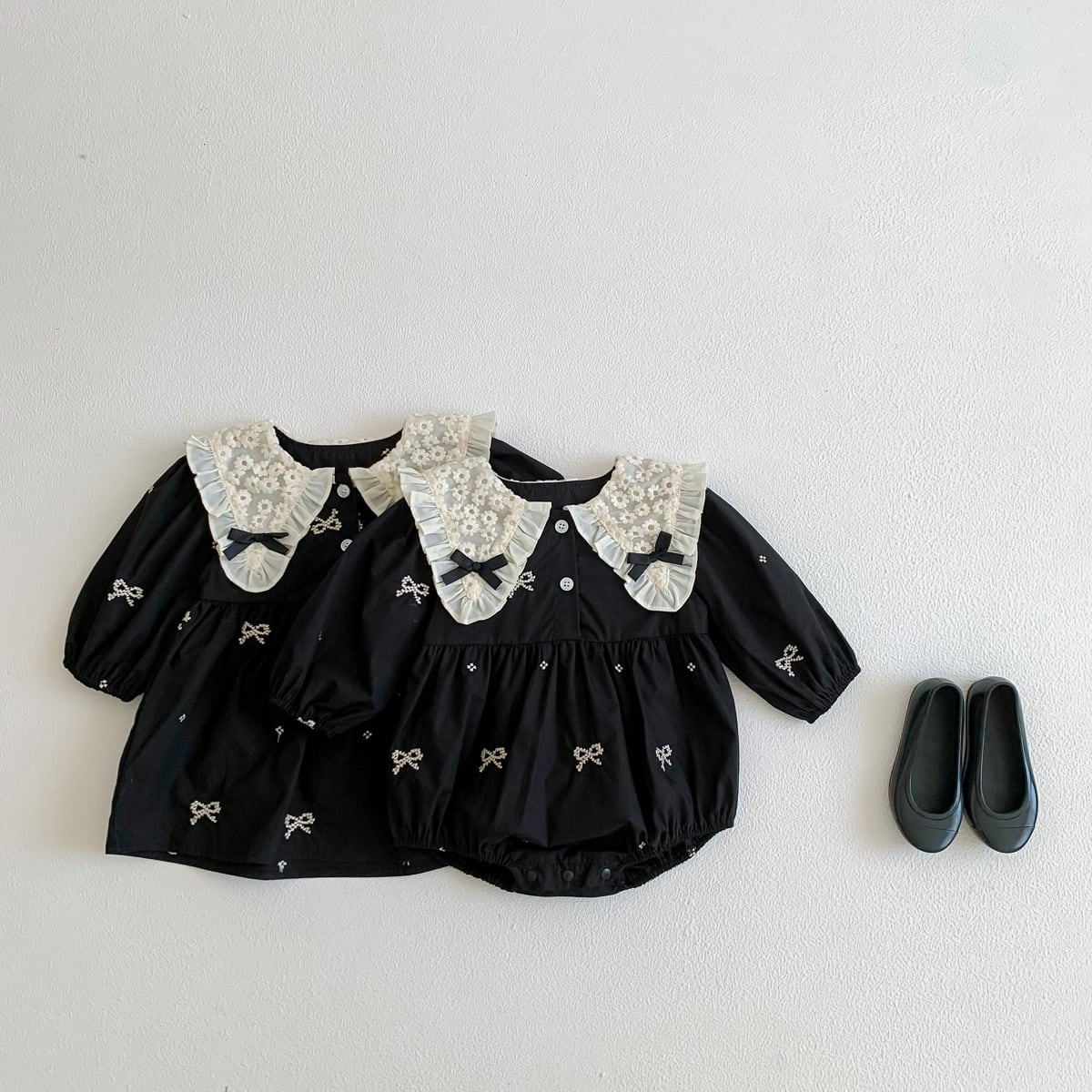 【姉妹服】蝶結び刺繍プリンセスロンパース、ワンピースSK061003