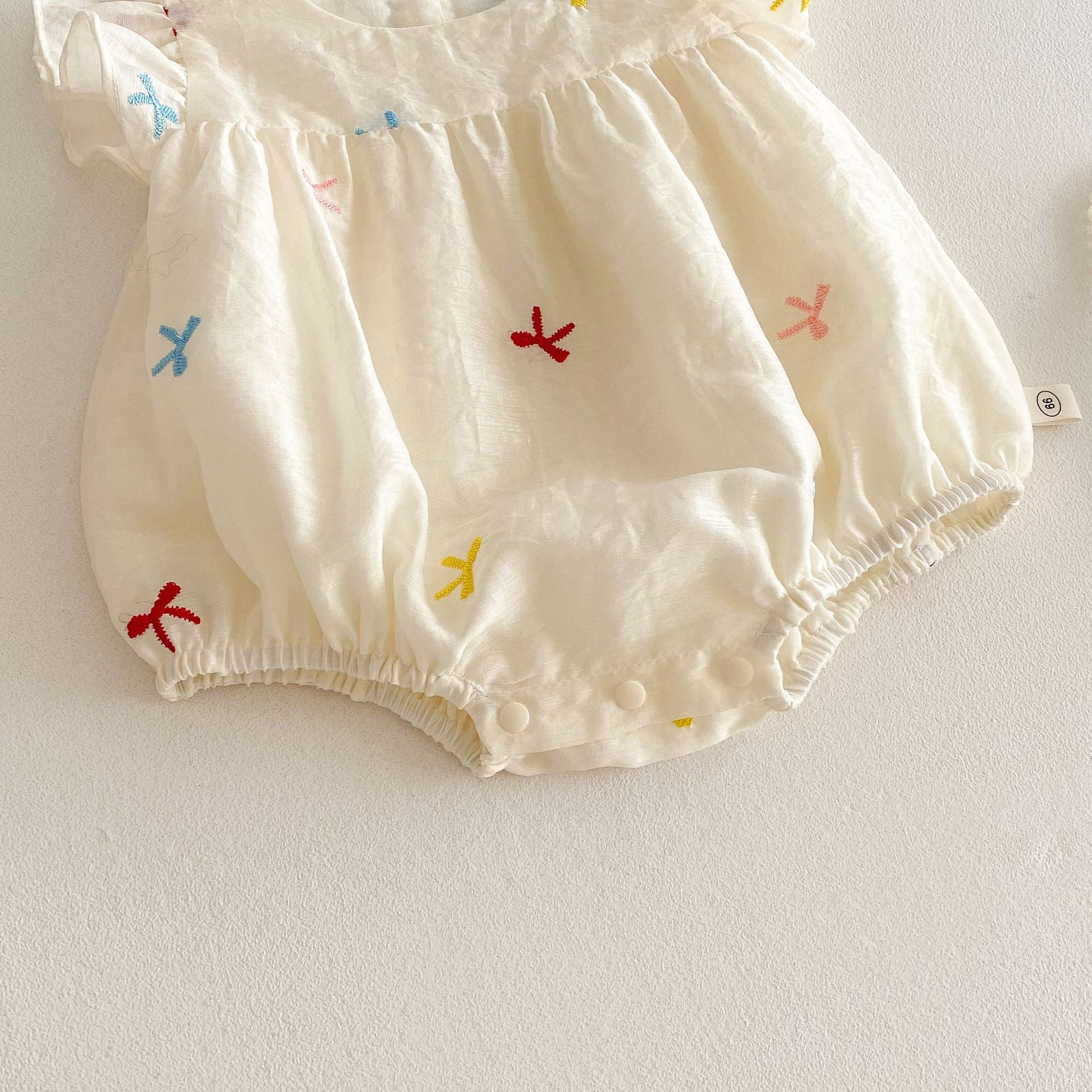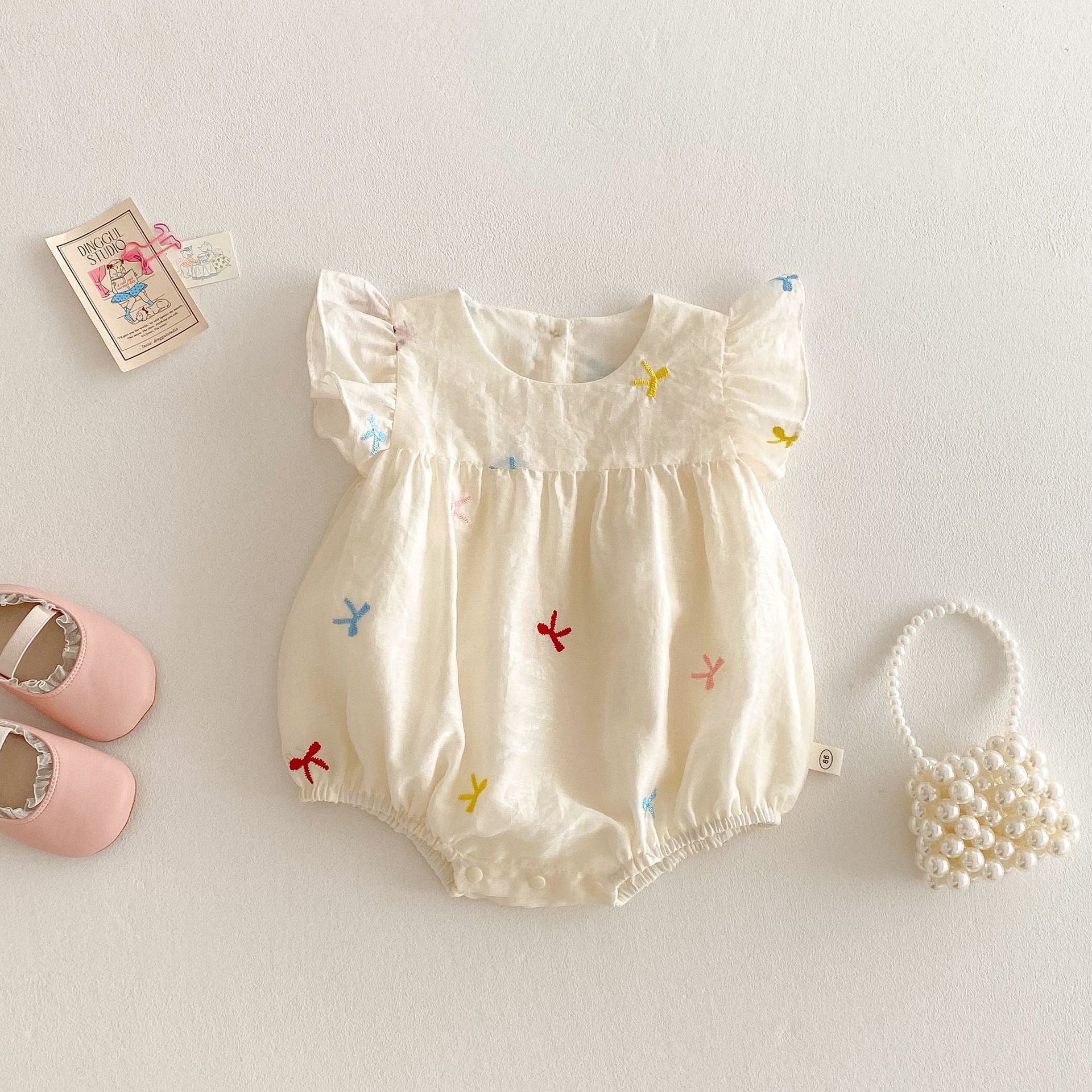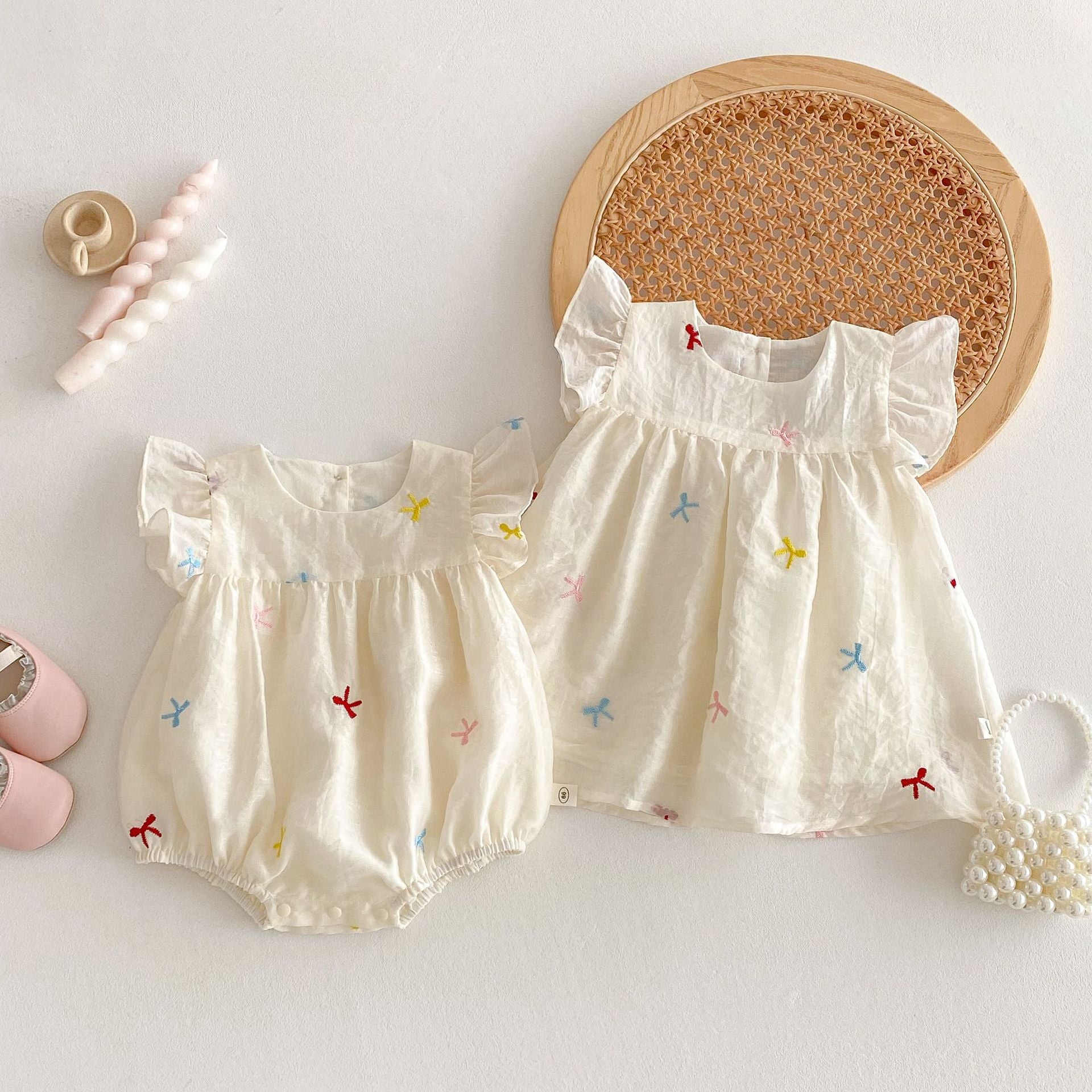 【姉妹服】夏新作 フリル蝶結び柄ロンパース、ワンピースSK061603