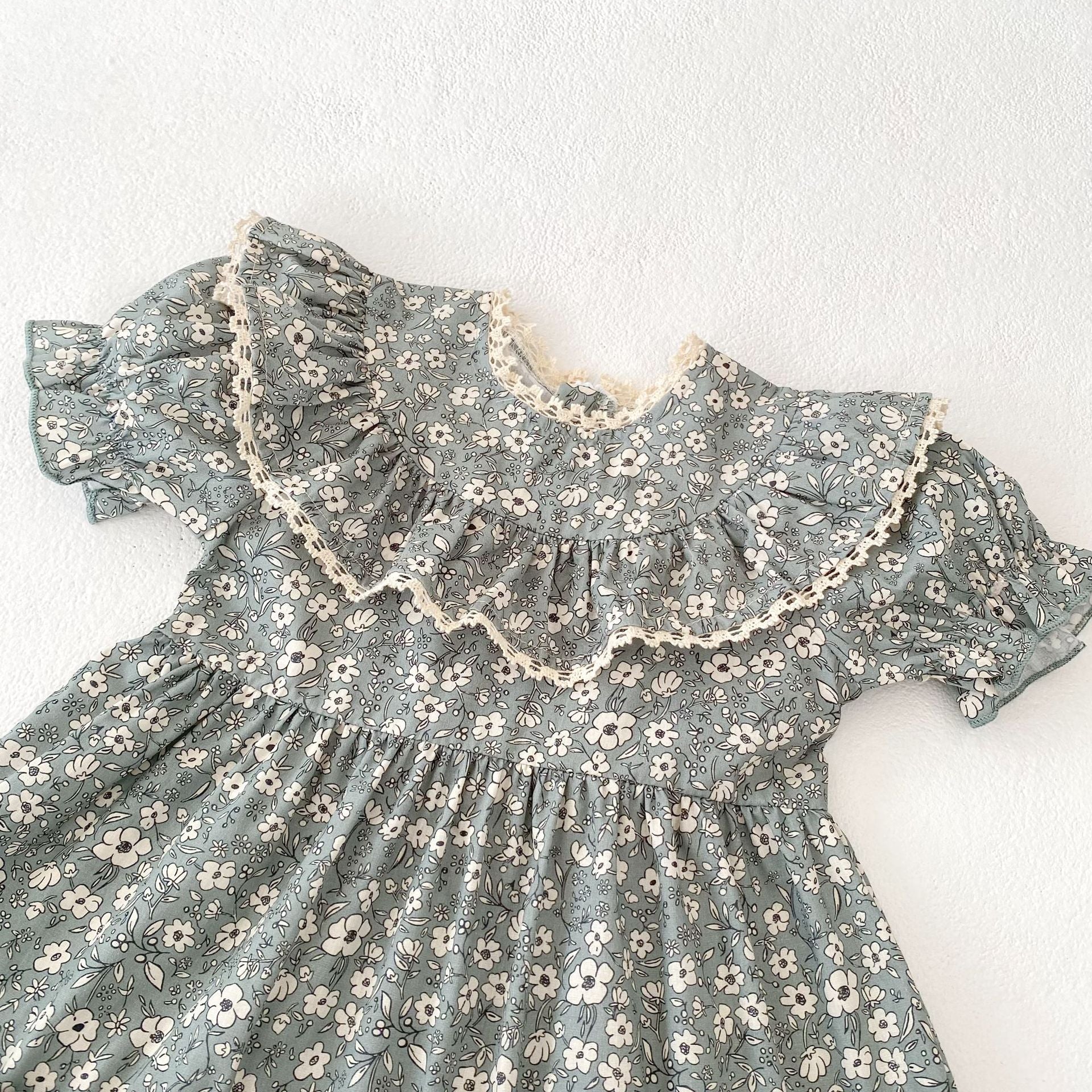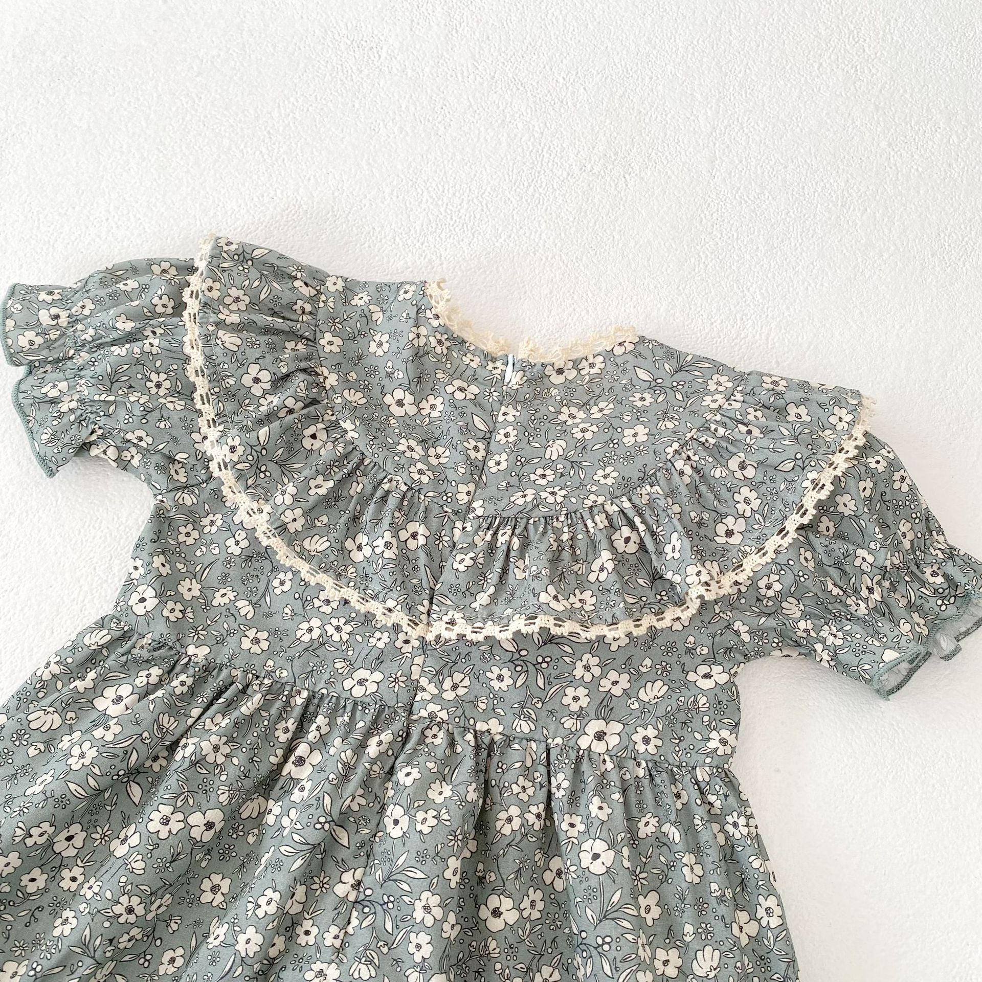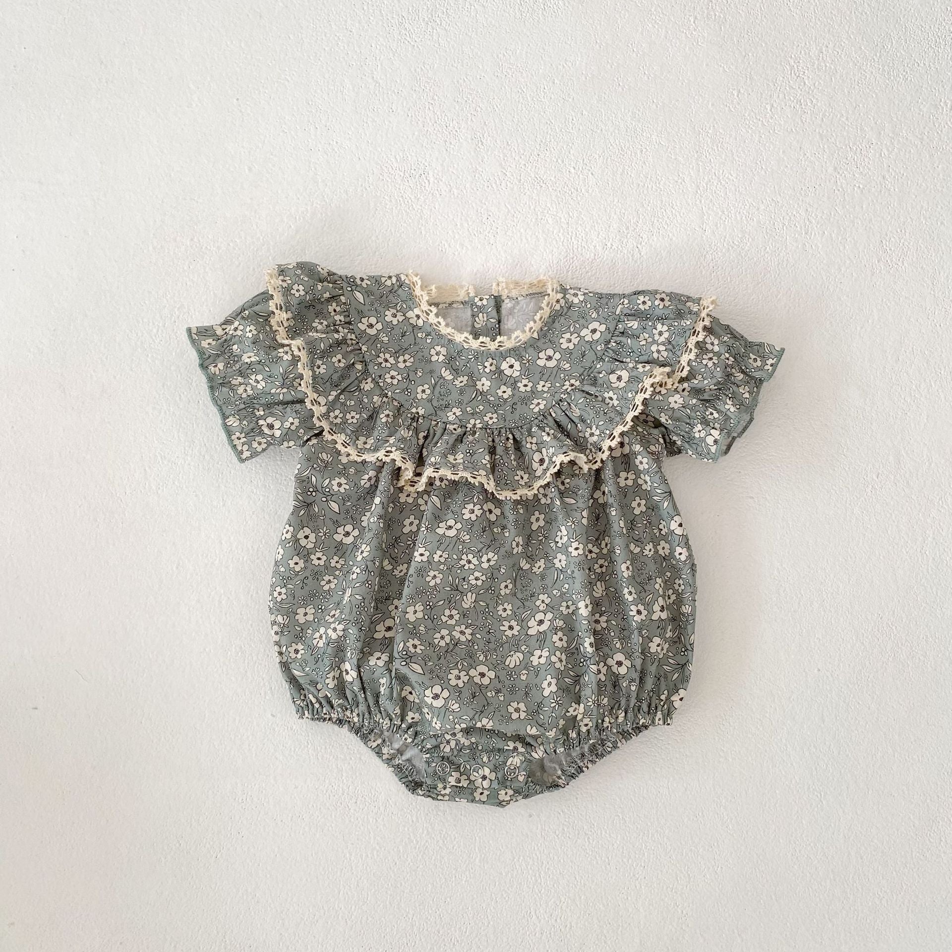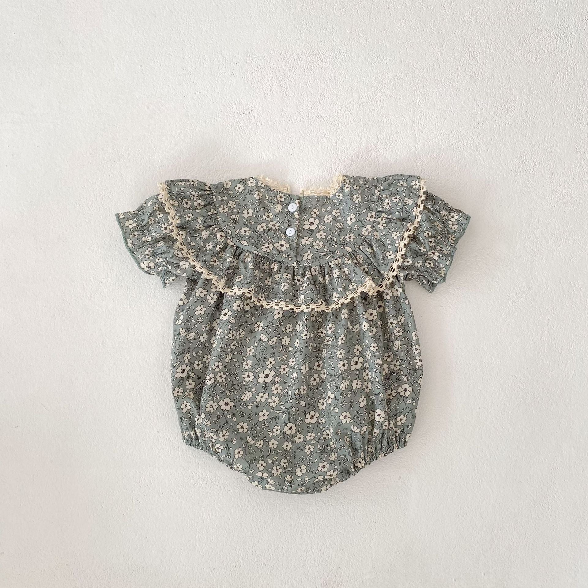 【姉妹服】夏新作 花柄グレーロンパース/ワンピースSK062317