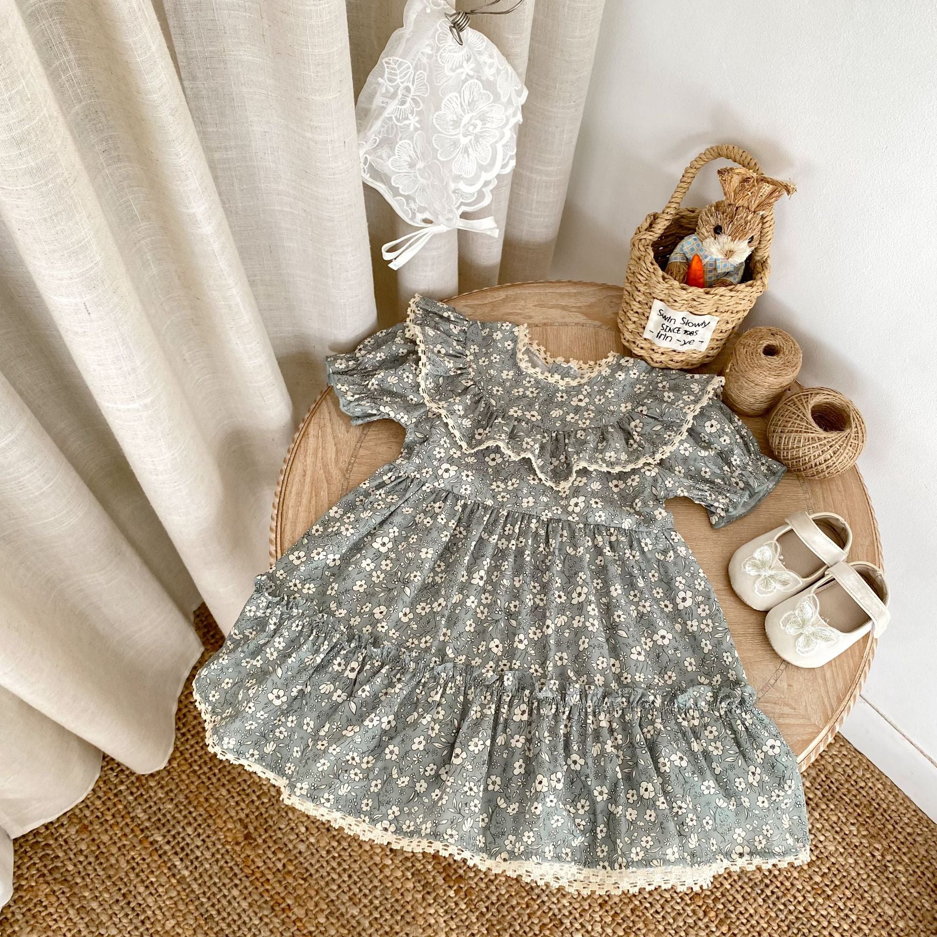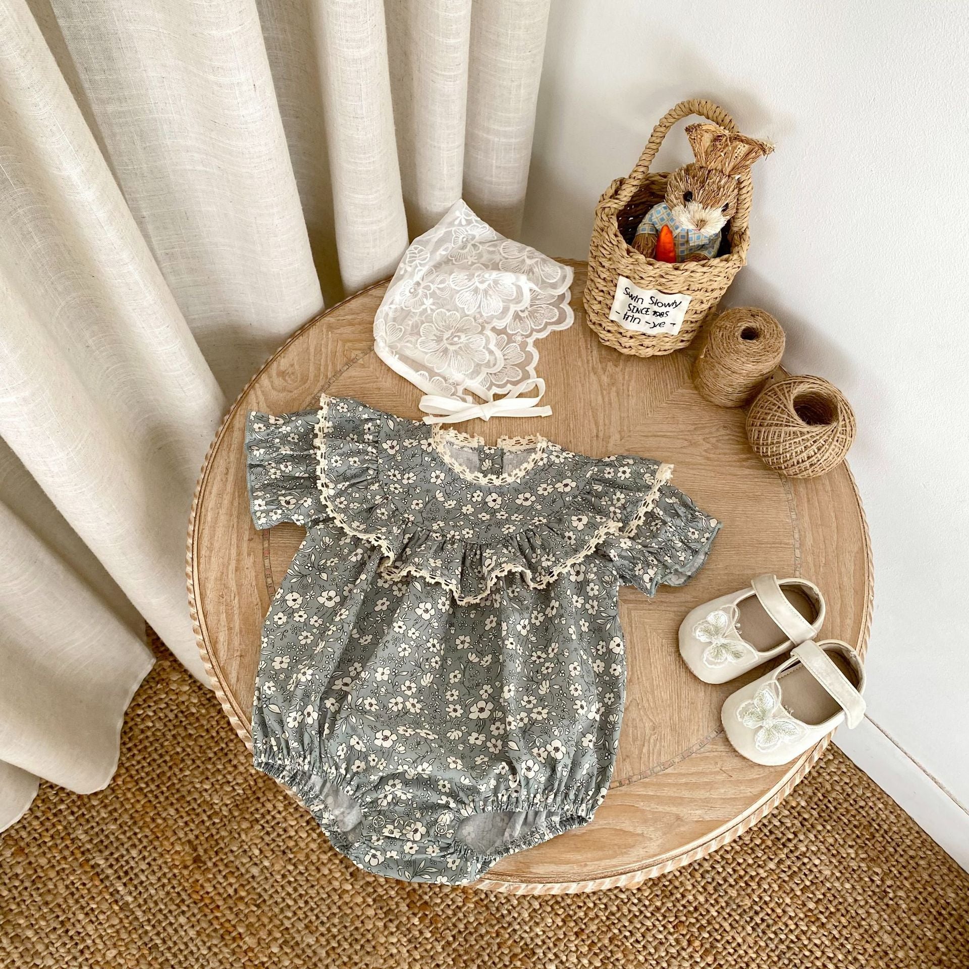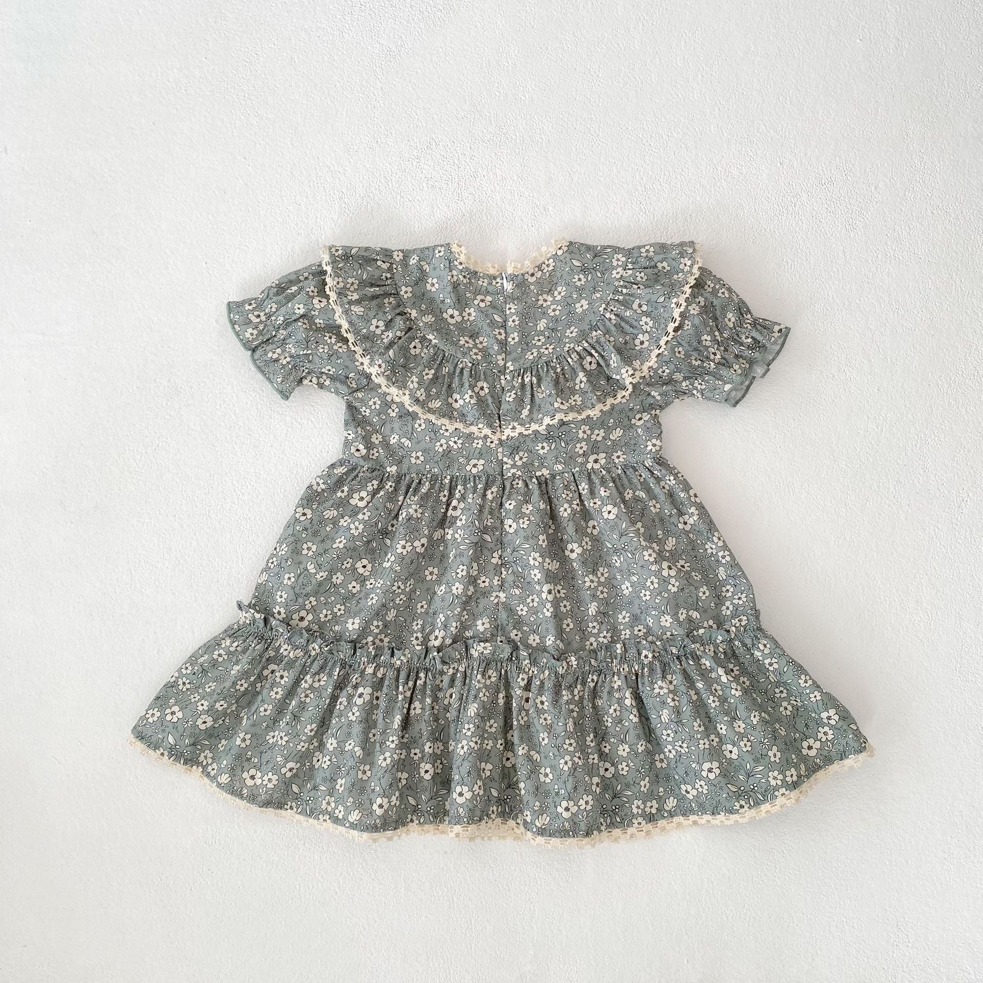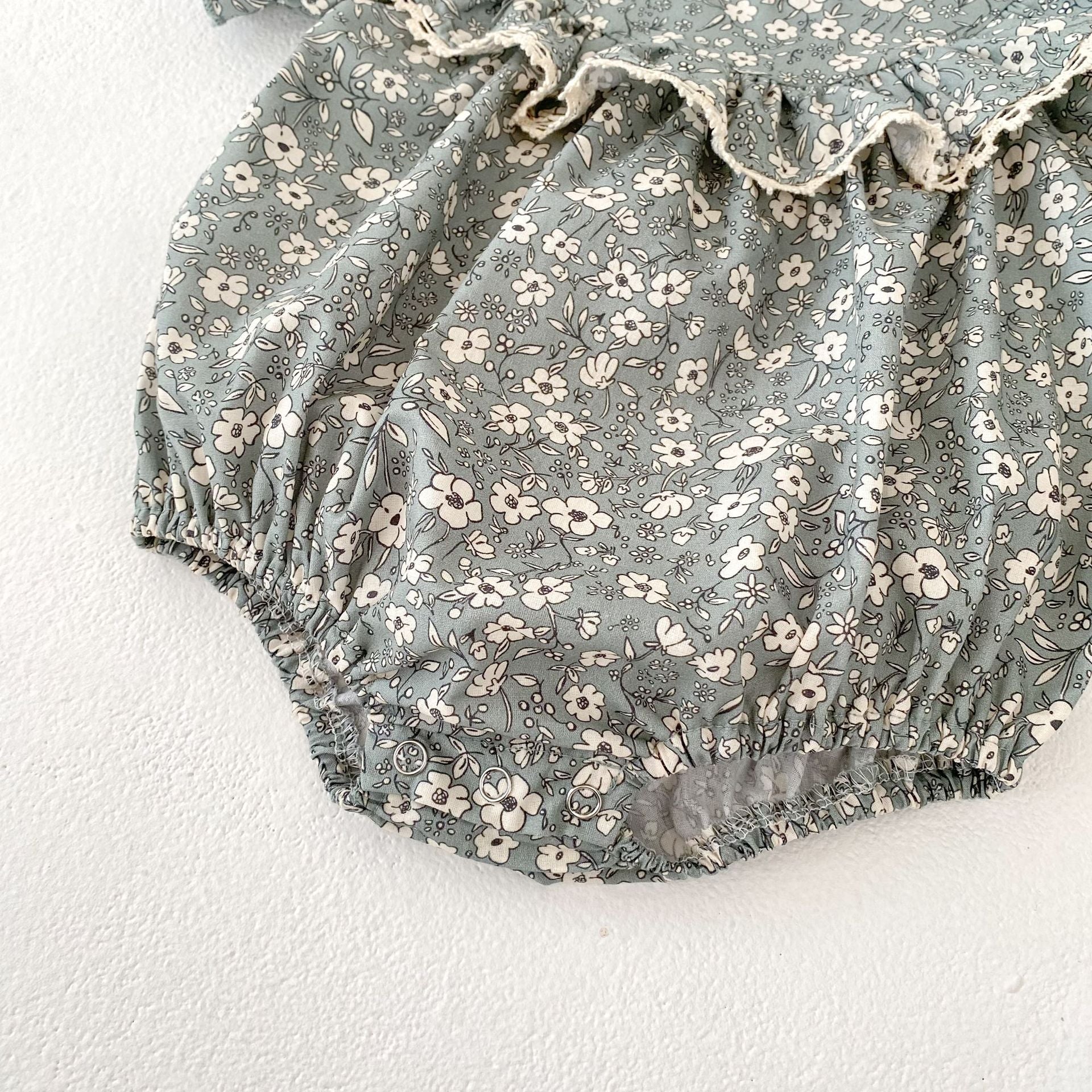 【姉妹服】夏新作 花柄グレーロンパース/ワンピースSK062317