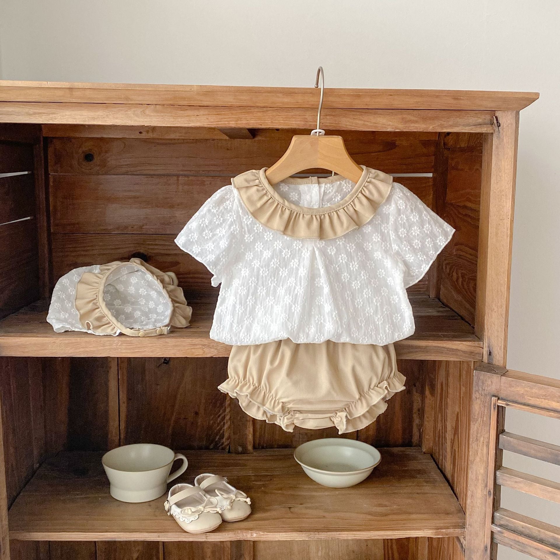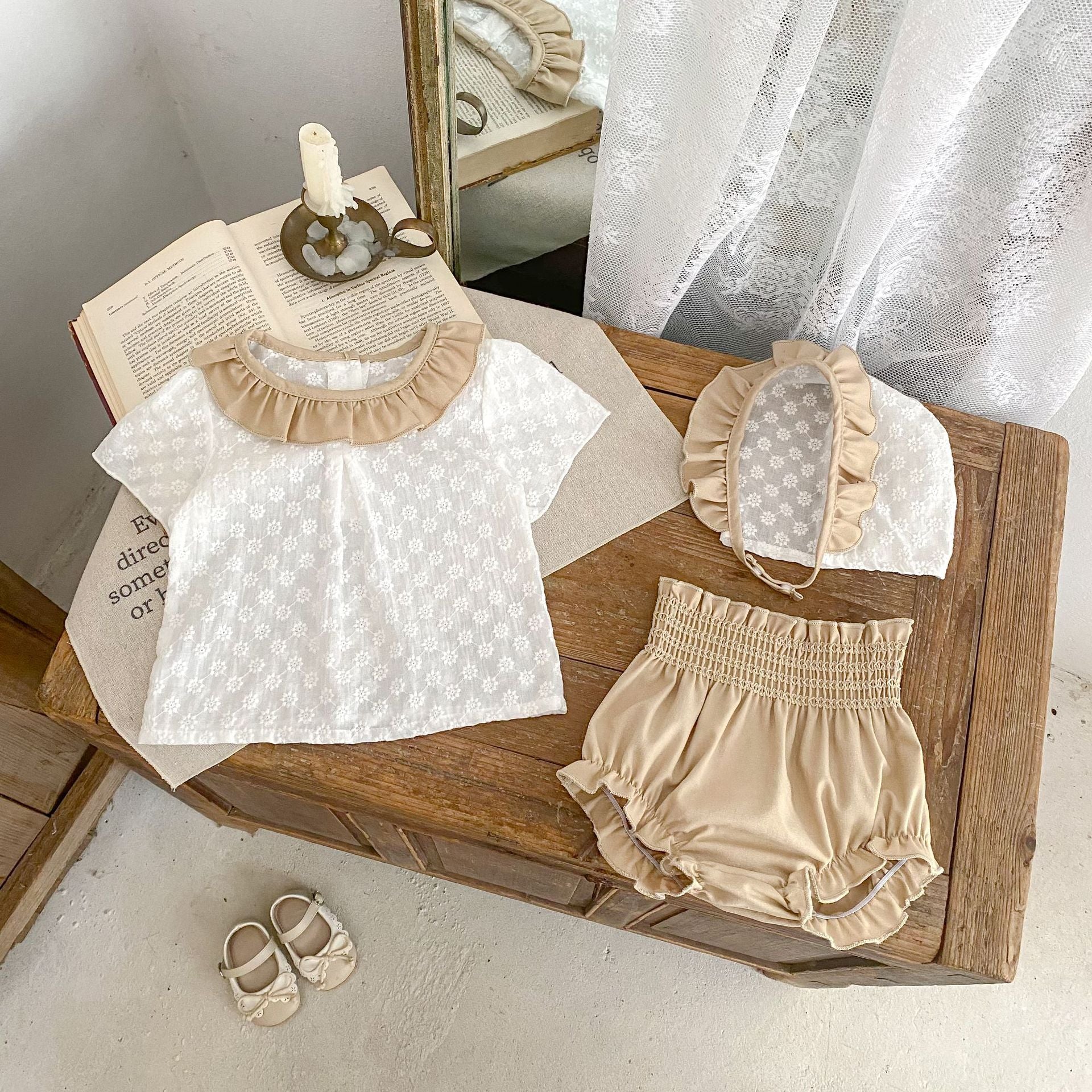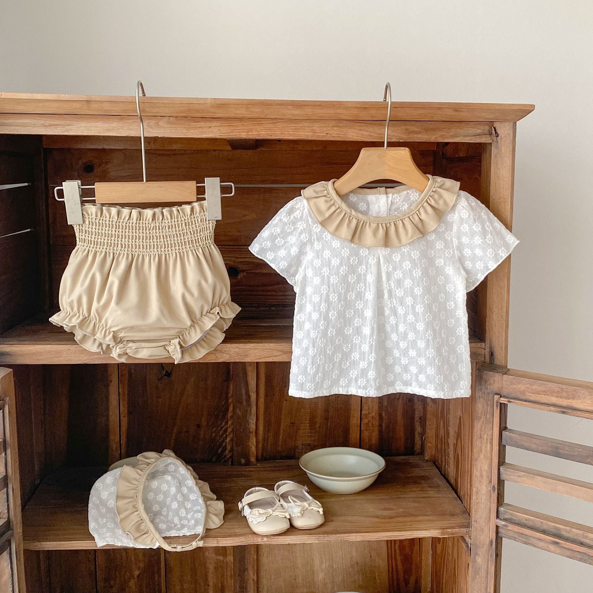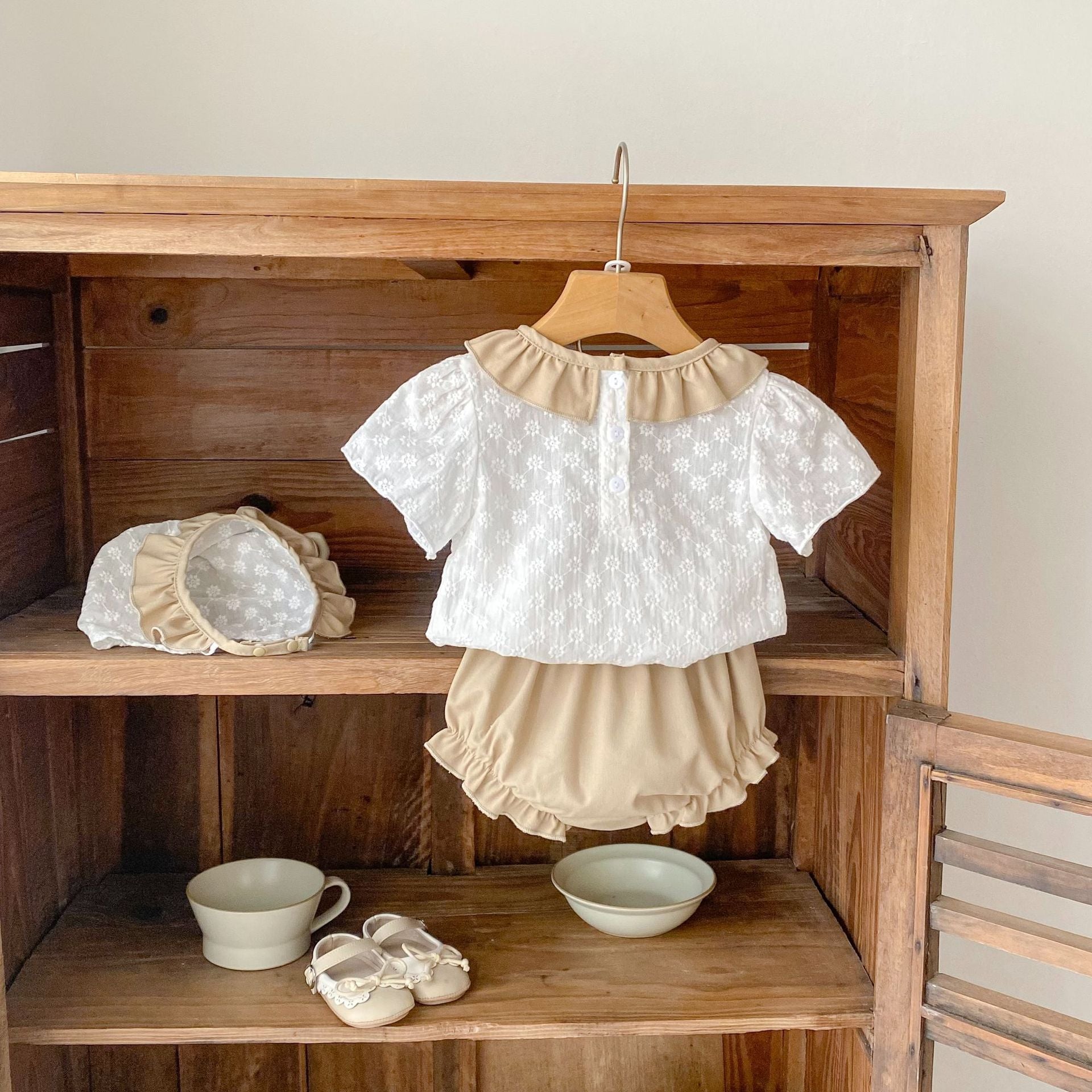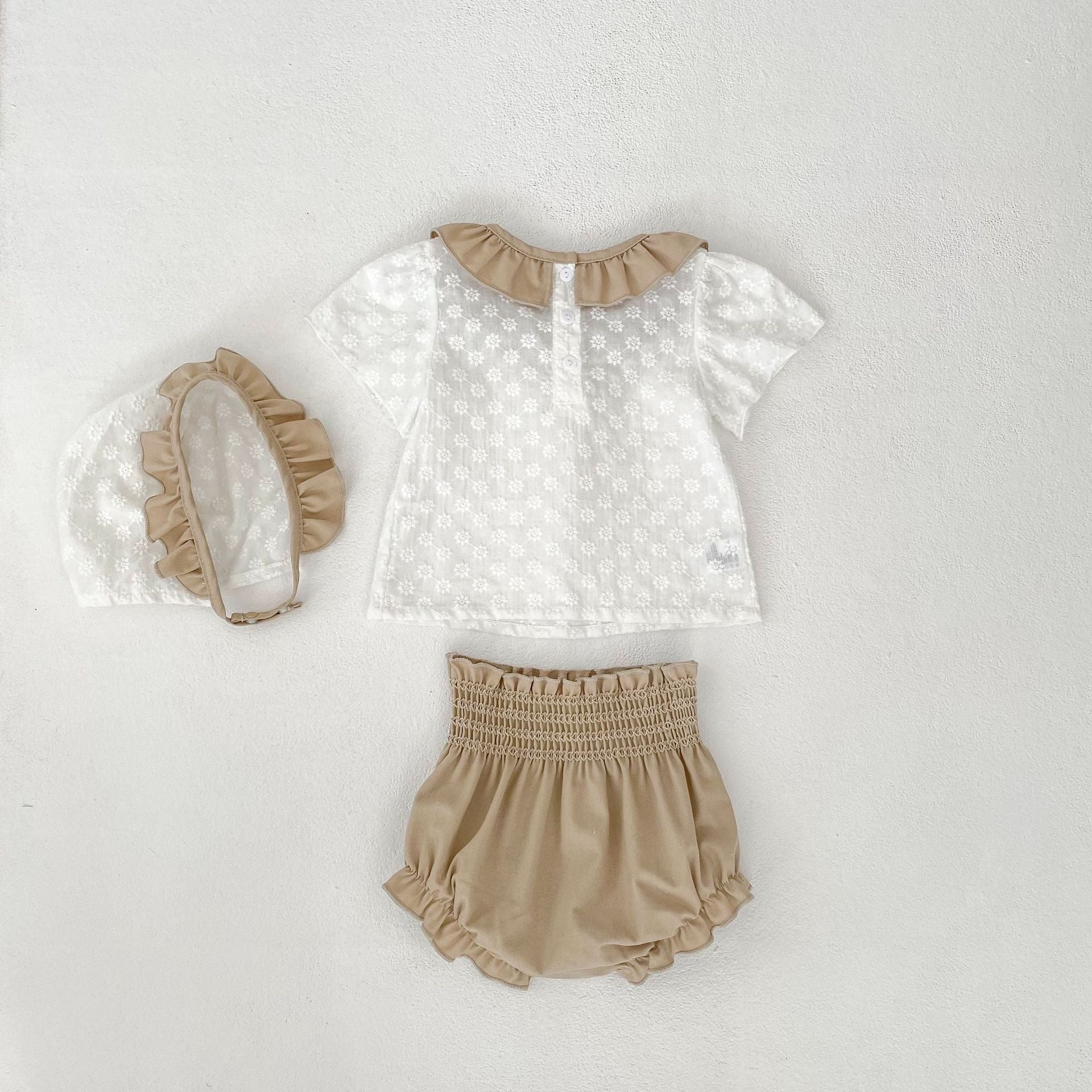 【3点セット】夏新作 フラワー刺繡Tシャツ&ブルマ&帽子SK061711