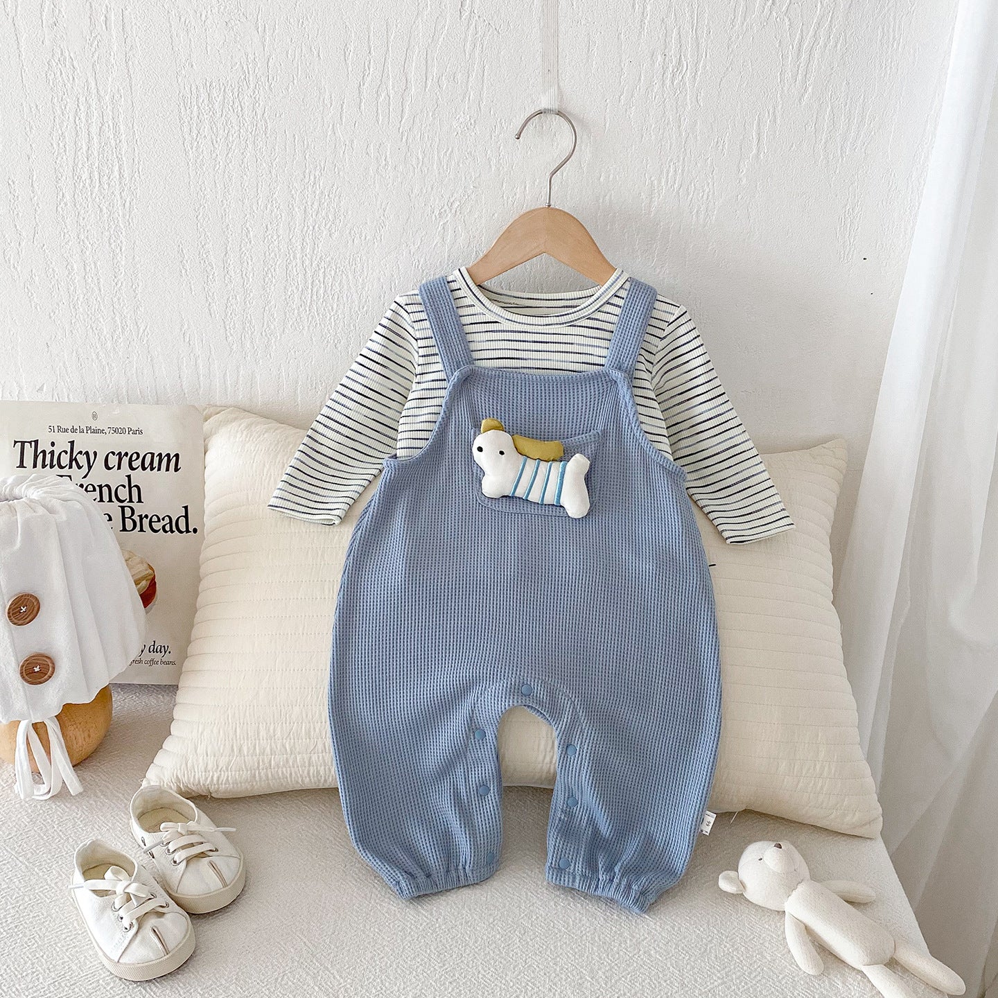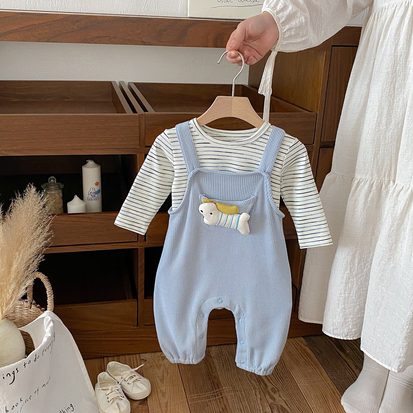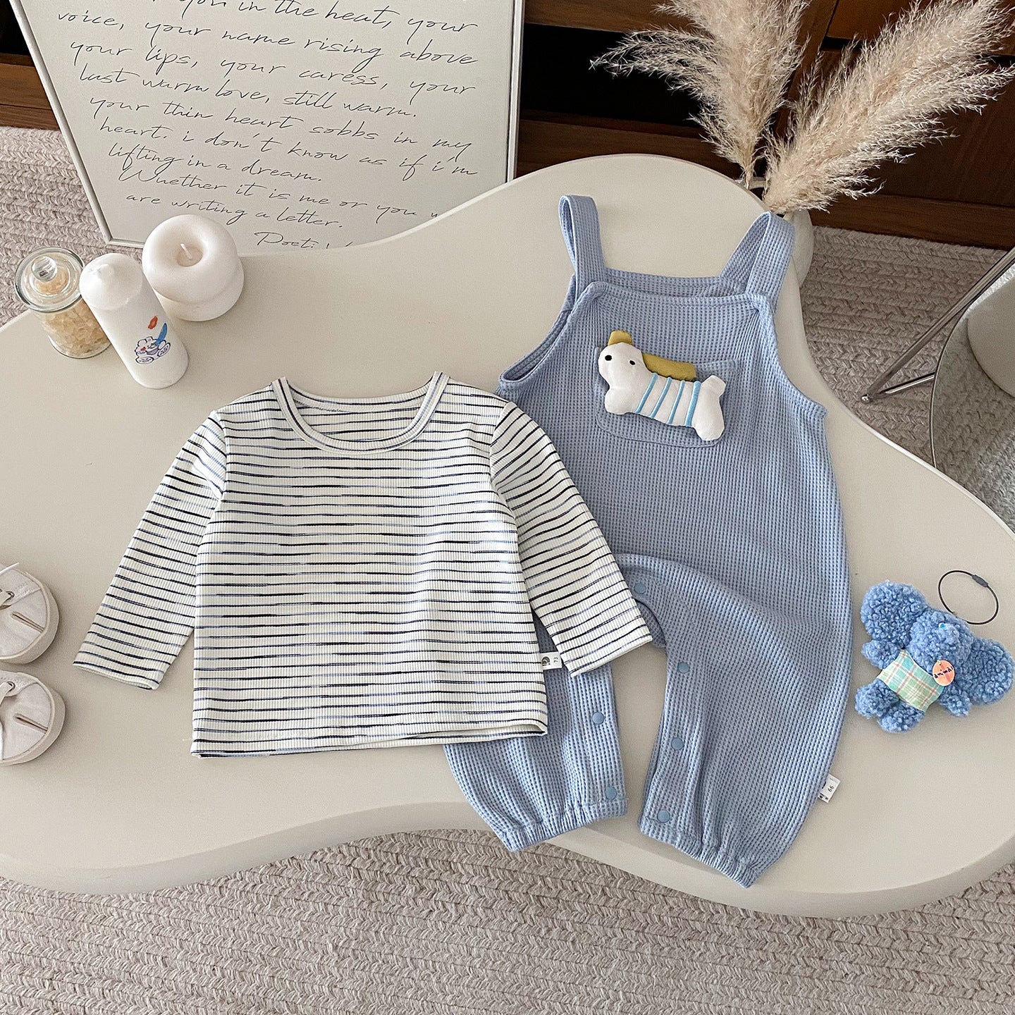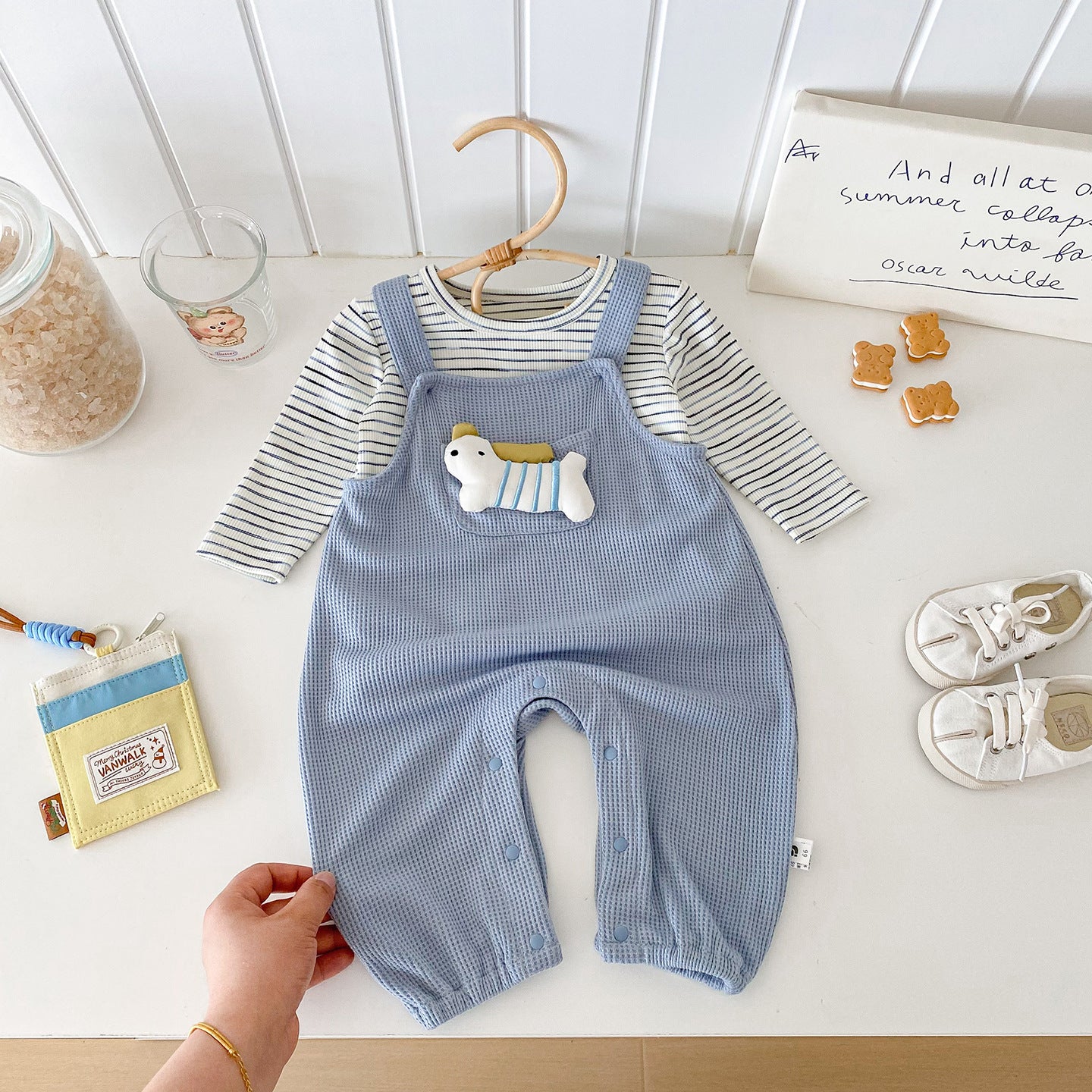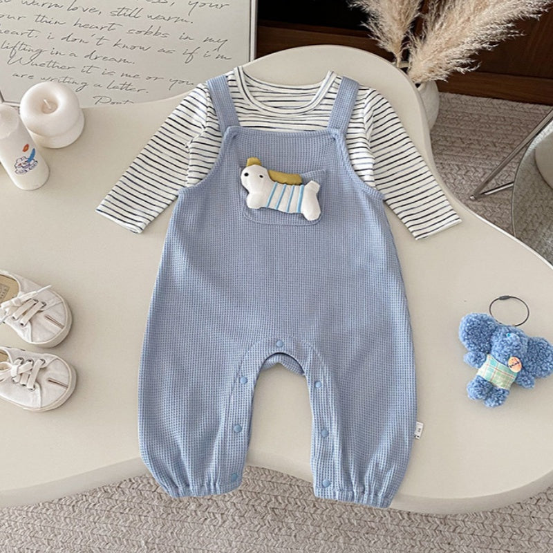 【BABY】いぬサロペットパンツ&ボーダートップス2点セットSK100404
