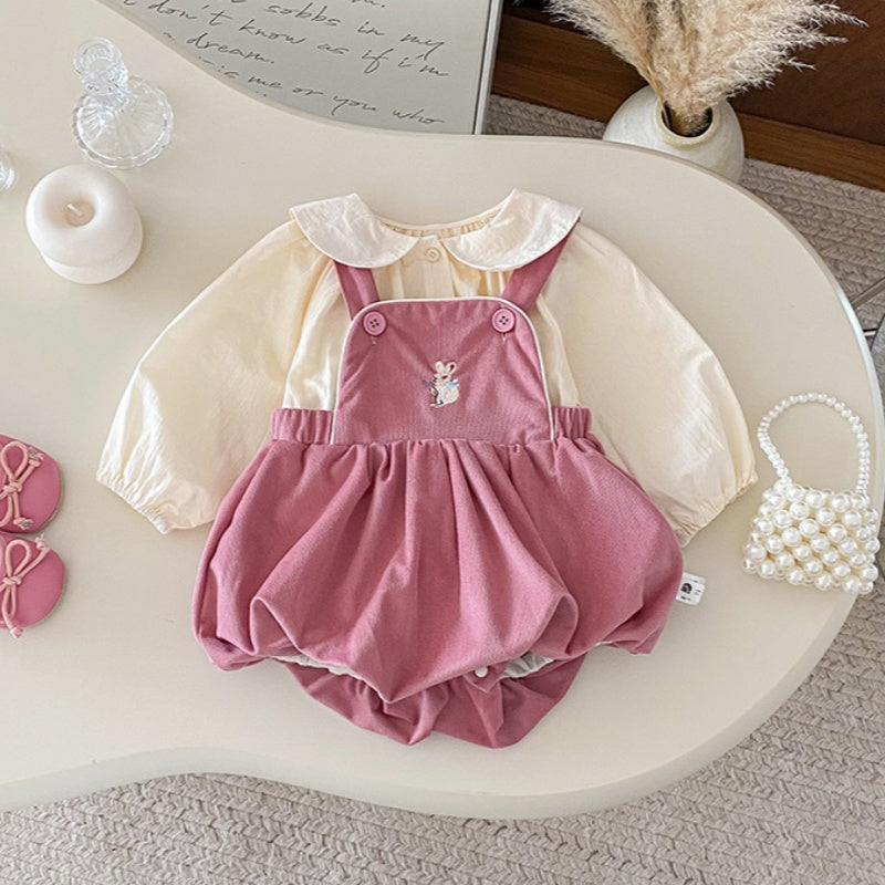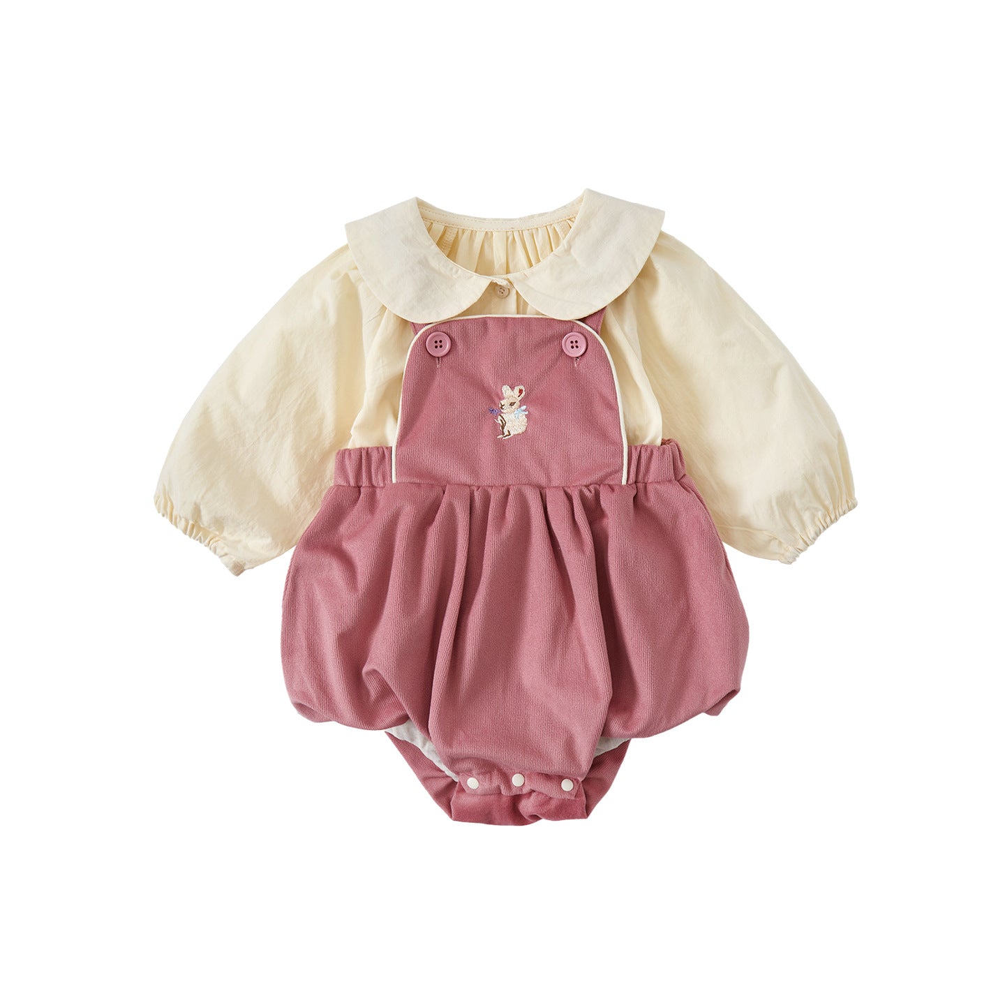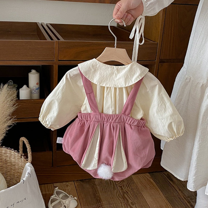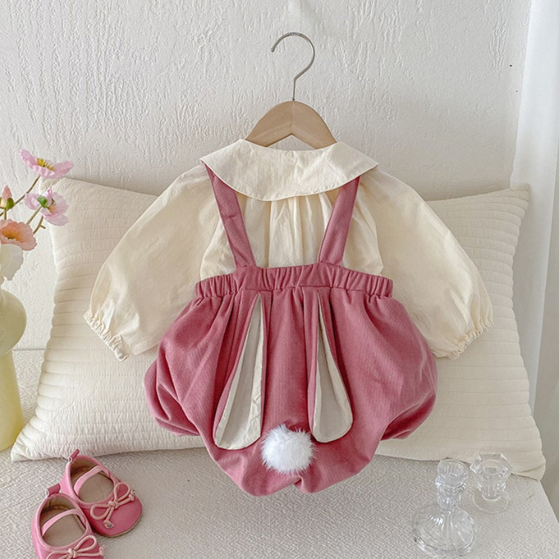 【BABY】うさぎサロペットロンパース&丸襟ブラウスSK100406