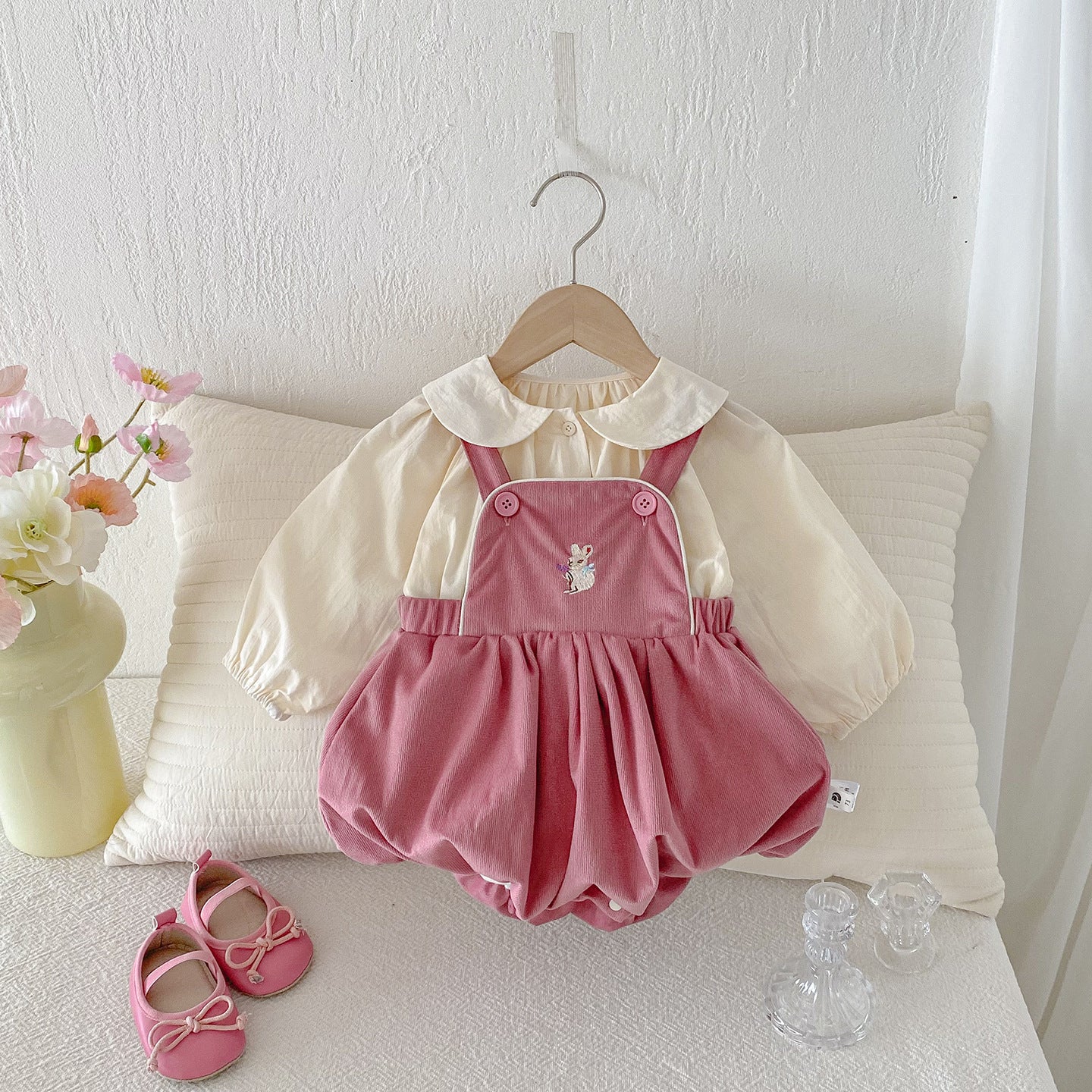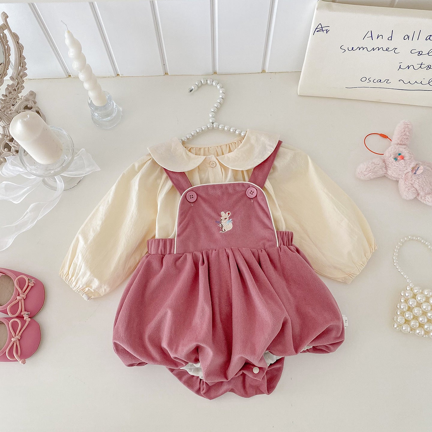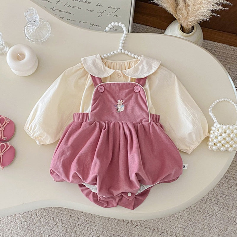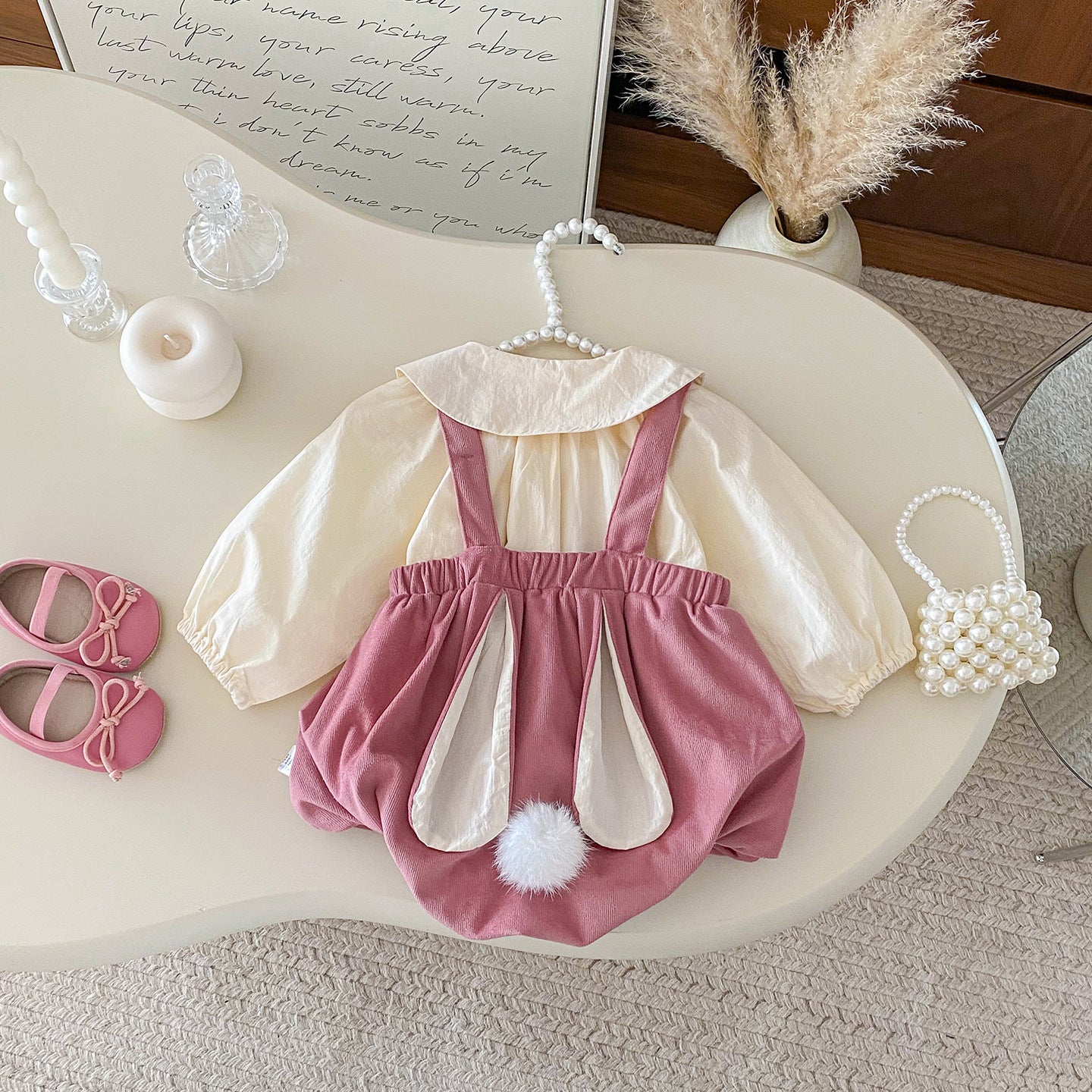 【BABY】うさぎサロペットロンパース&丸襟ブラウスSK100406