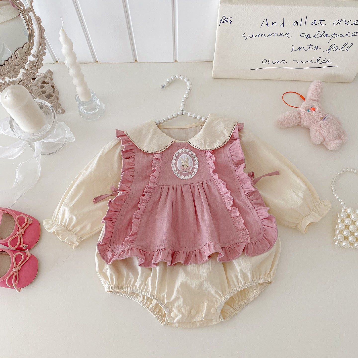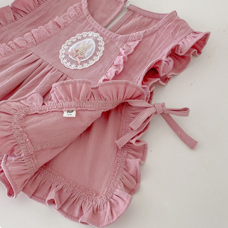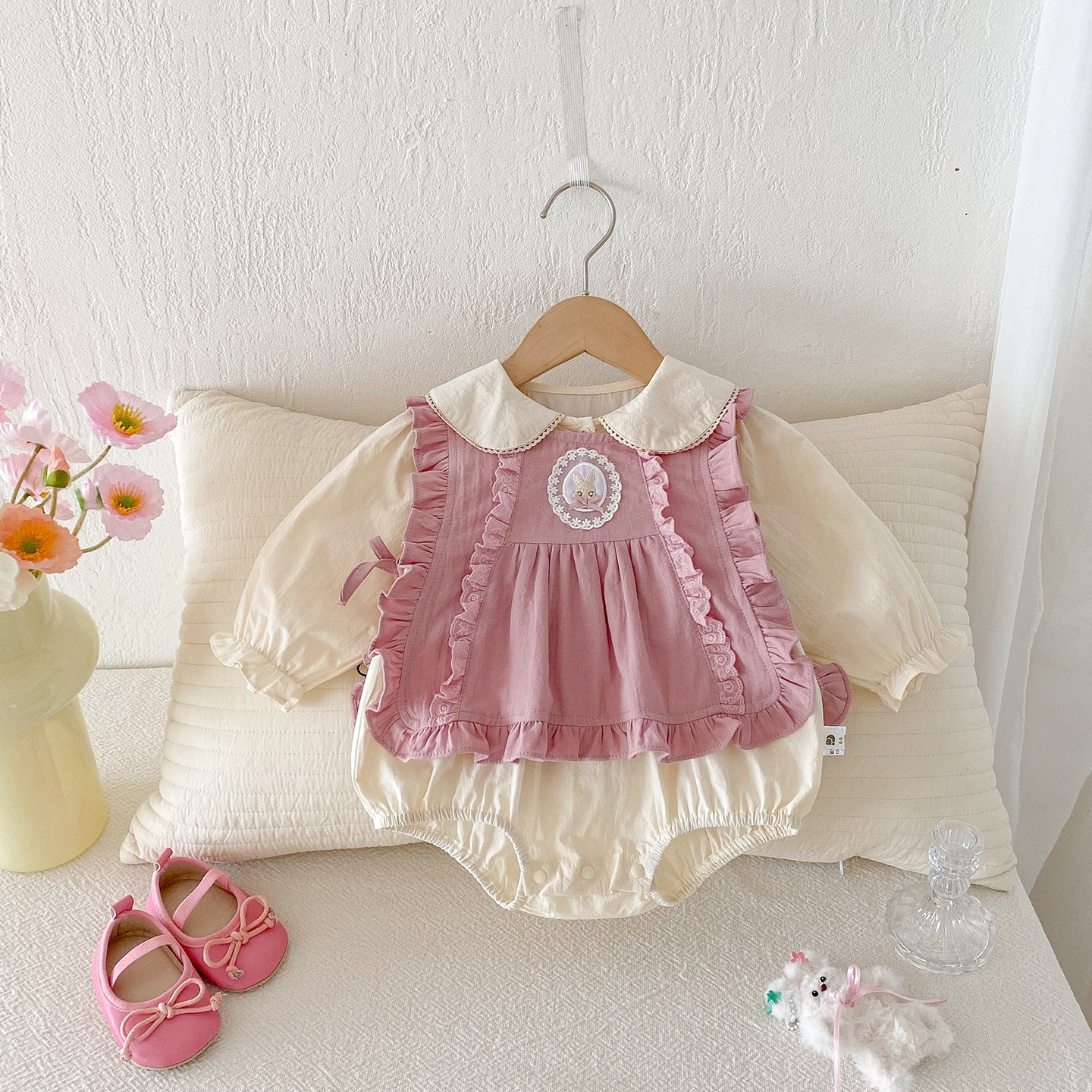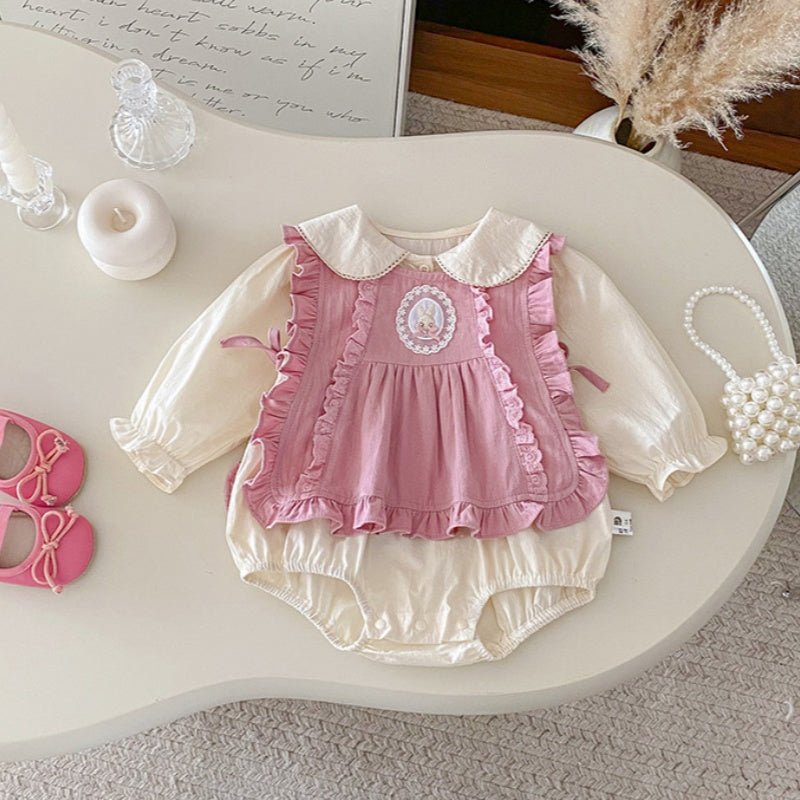 【BABY】うさぎベスト&無地ロンパースセットアップSK100401