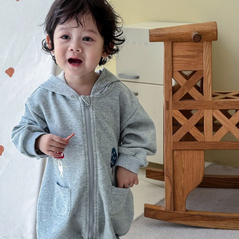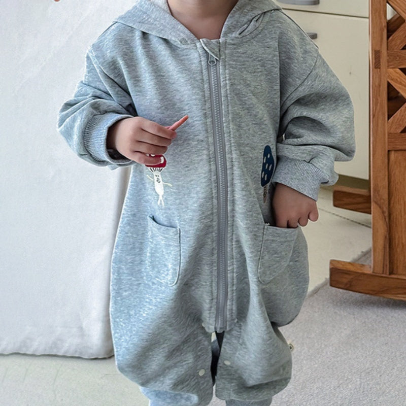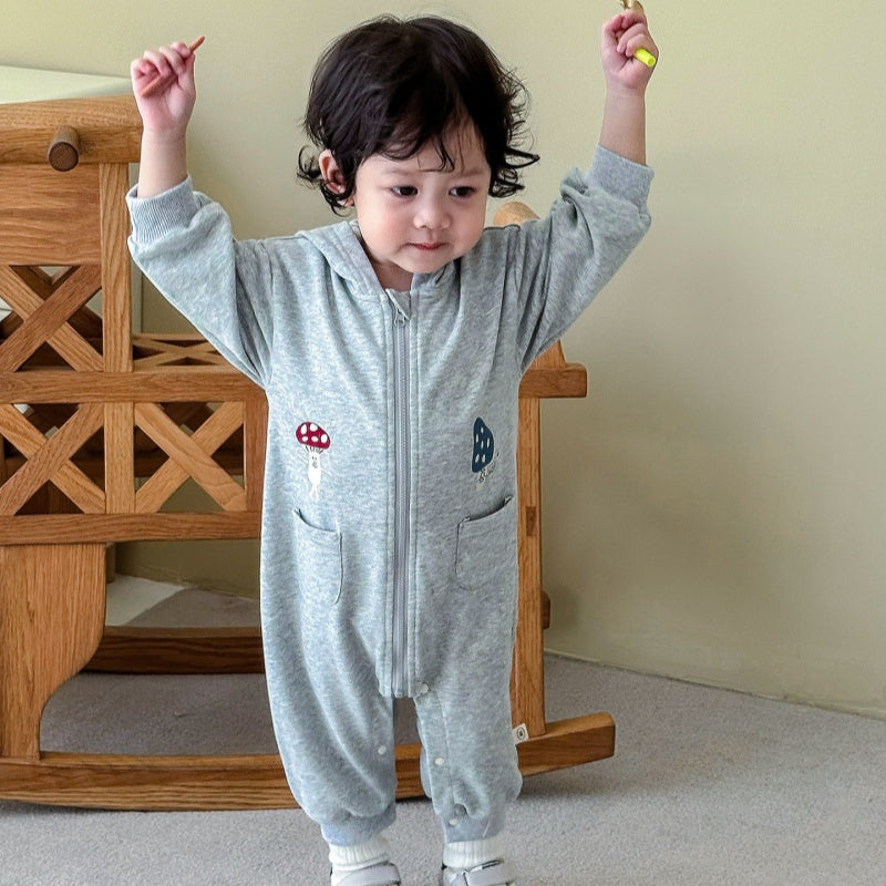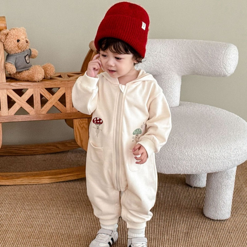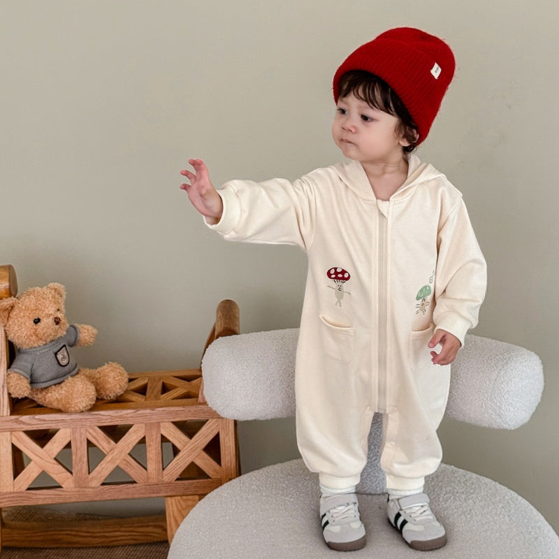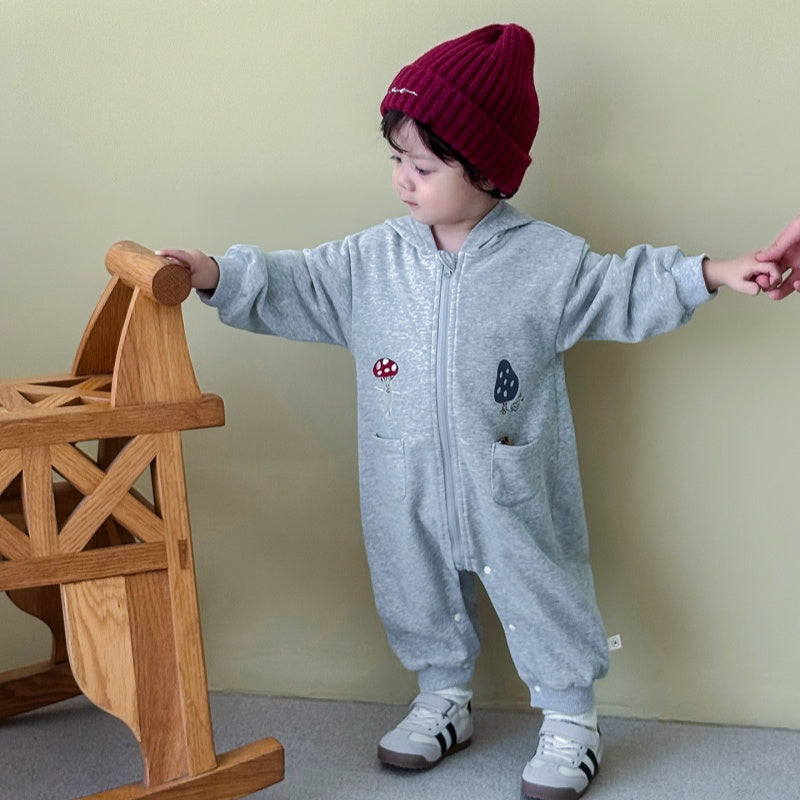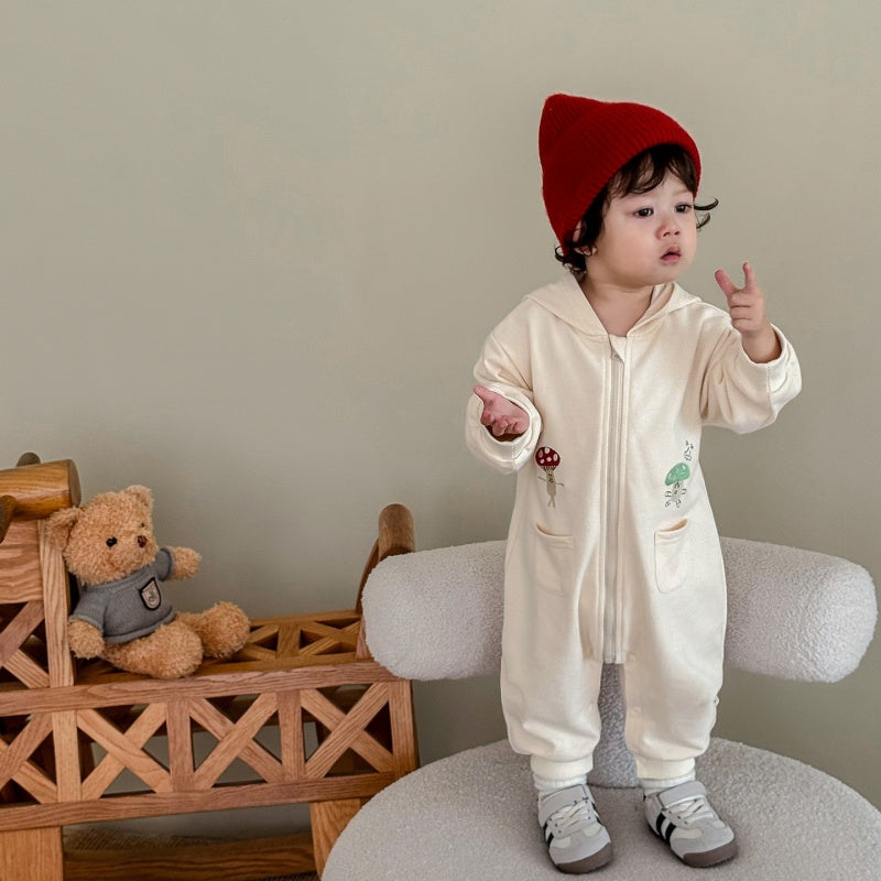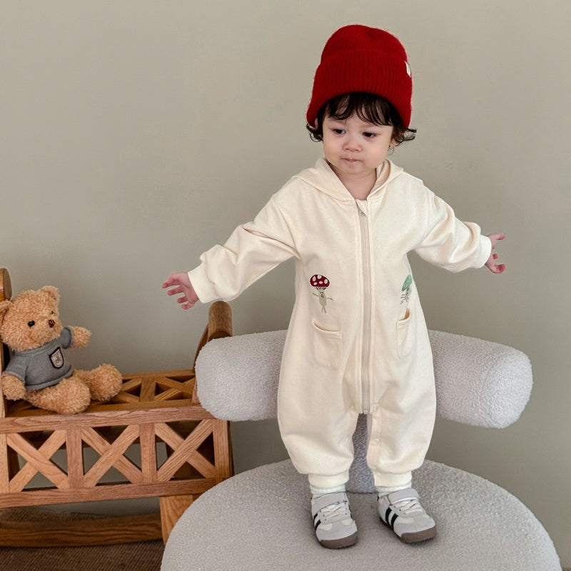 【BABY】きのこ刺繍フード付きカバーオールSK100307