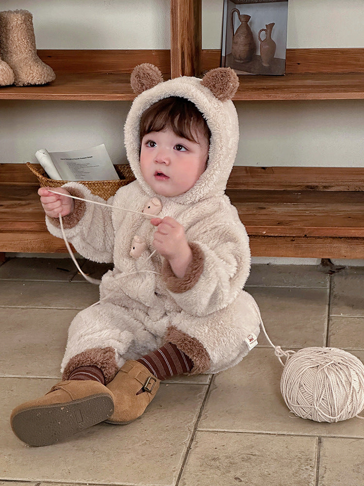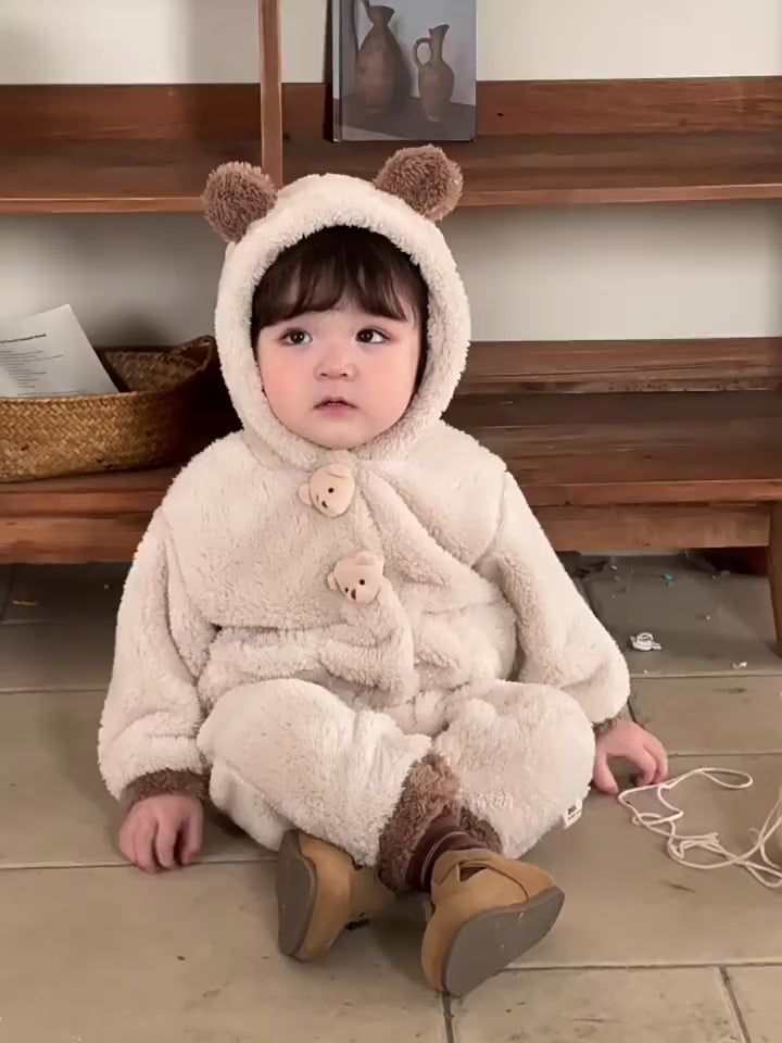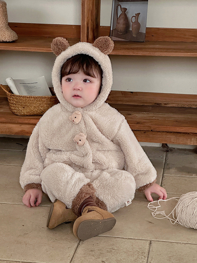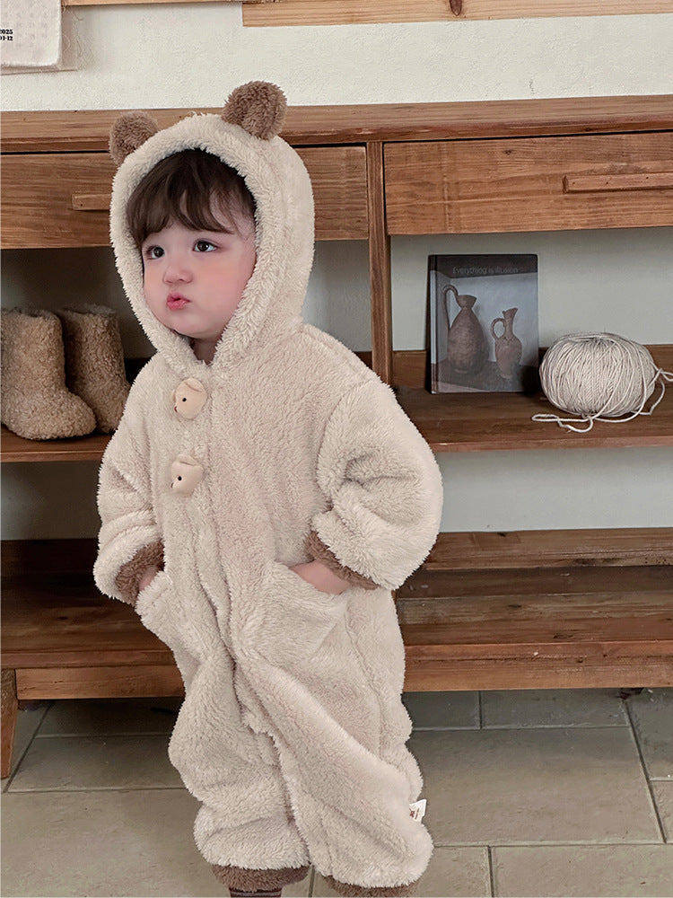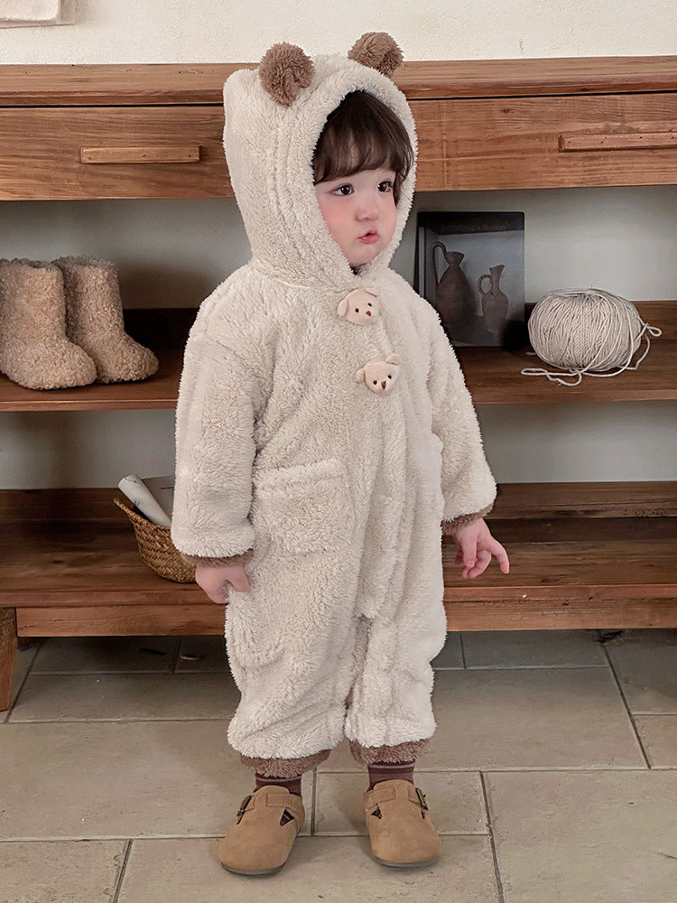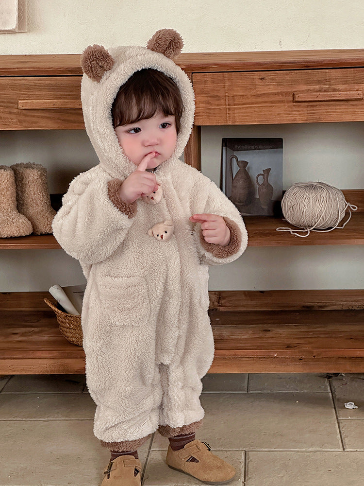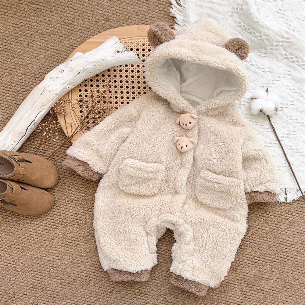 【BABY】もこもこクマ帽子付き暖かいロンパースSK11537