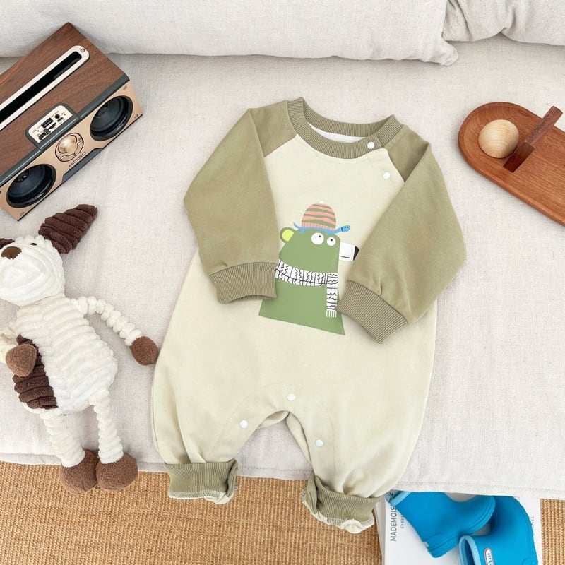 【BABY】カラーバリカートゥーン柄ロンパースSK051406