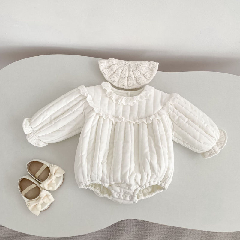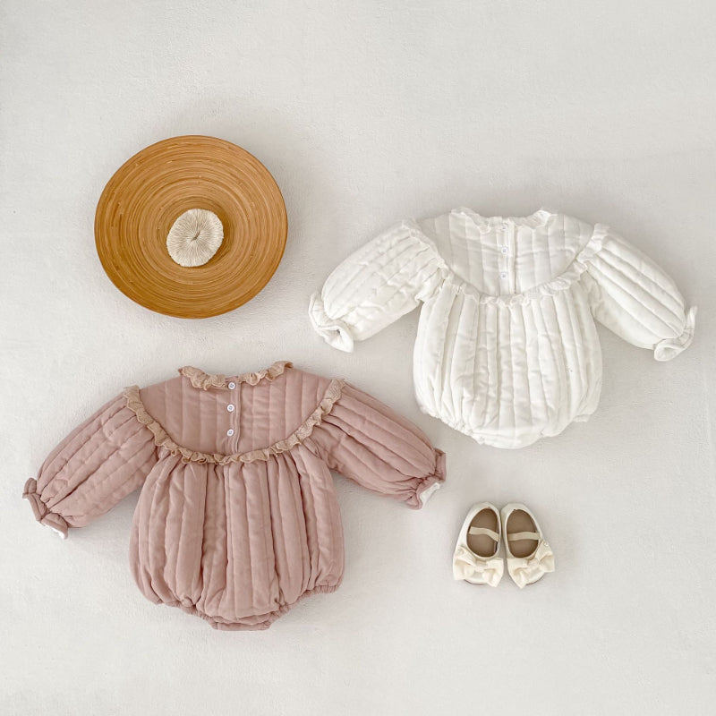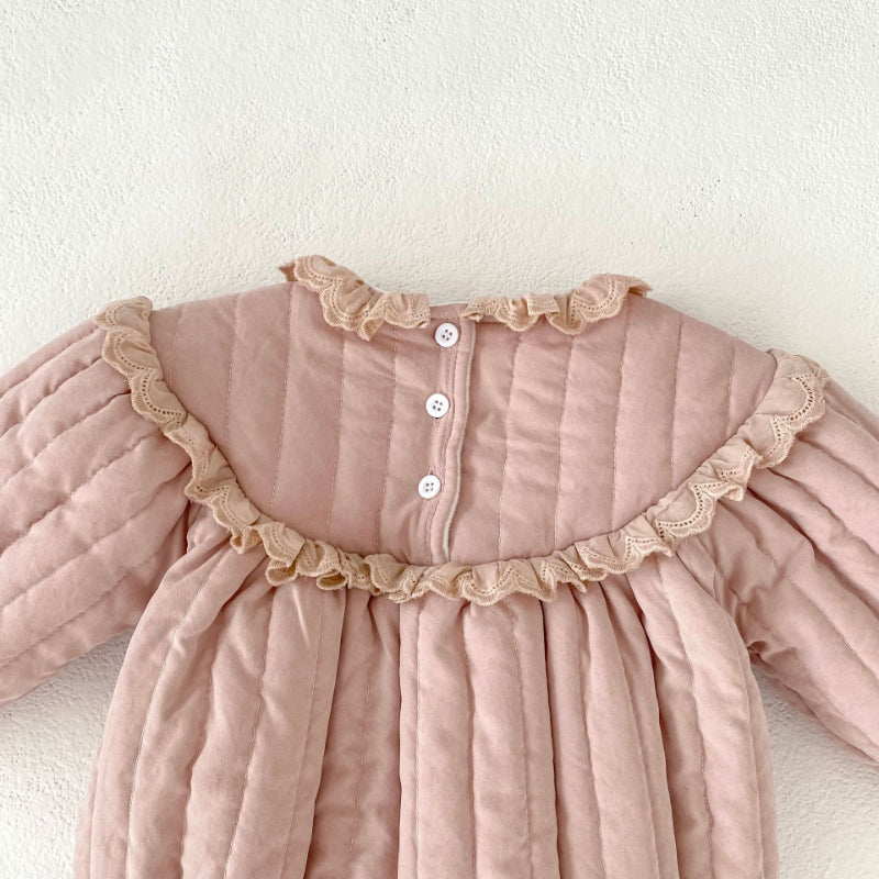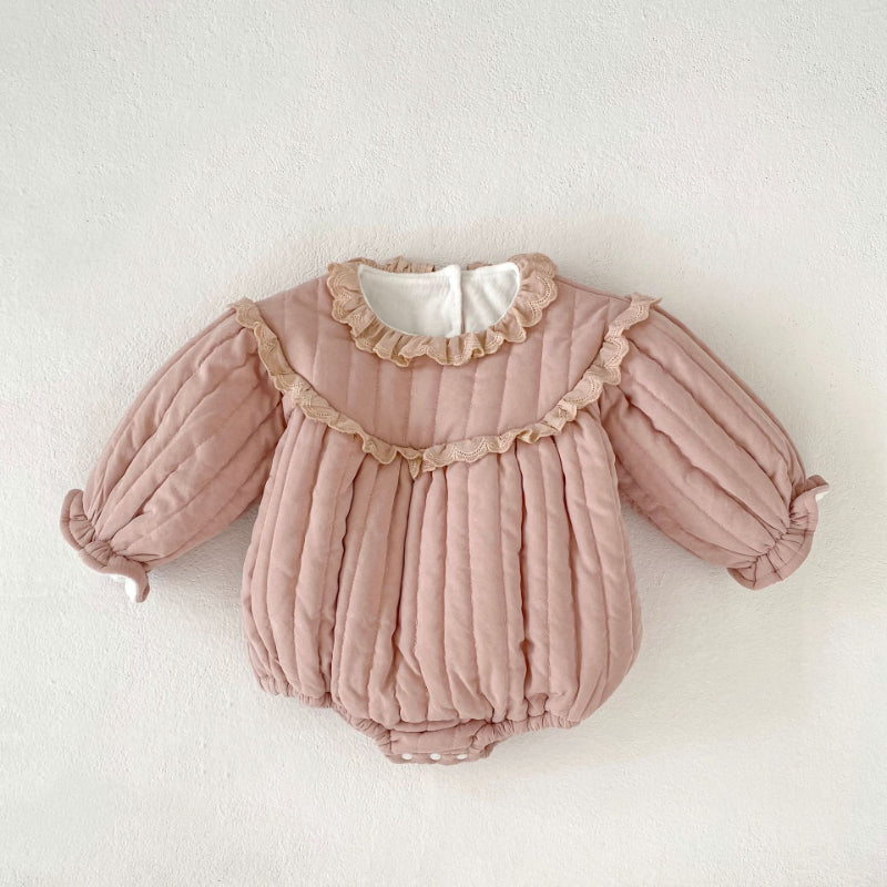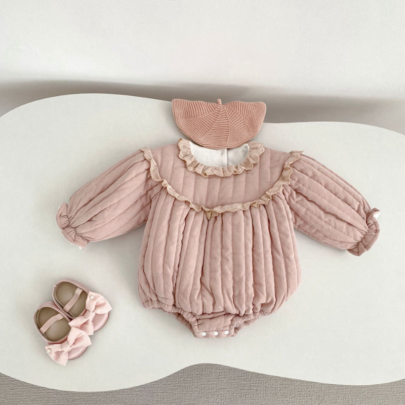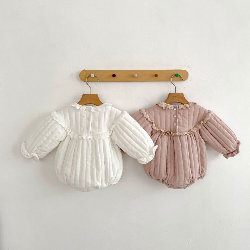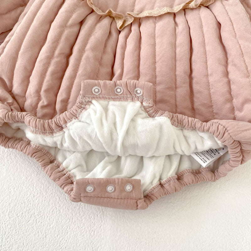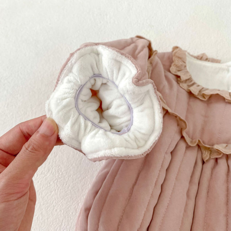 【BABY】冬新作 キュートなフリルレースプラッシュロンパースSK102406