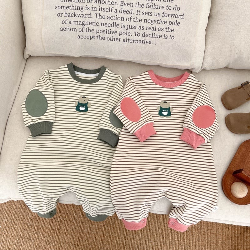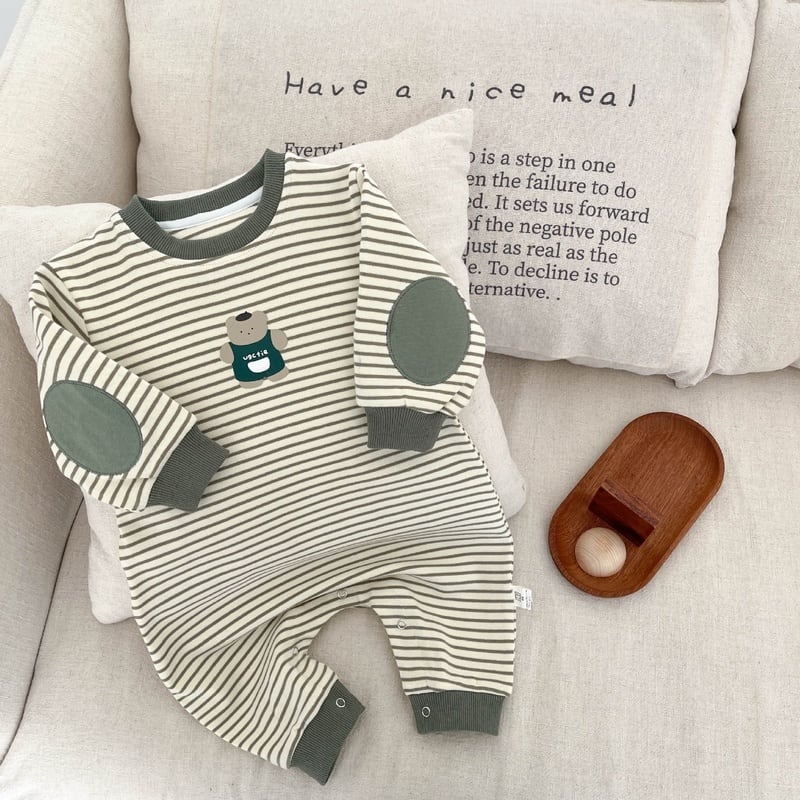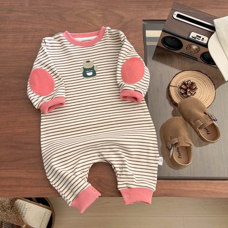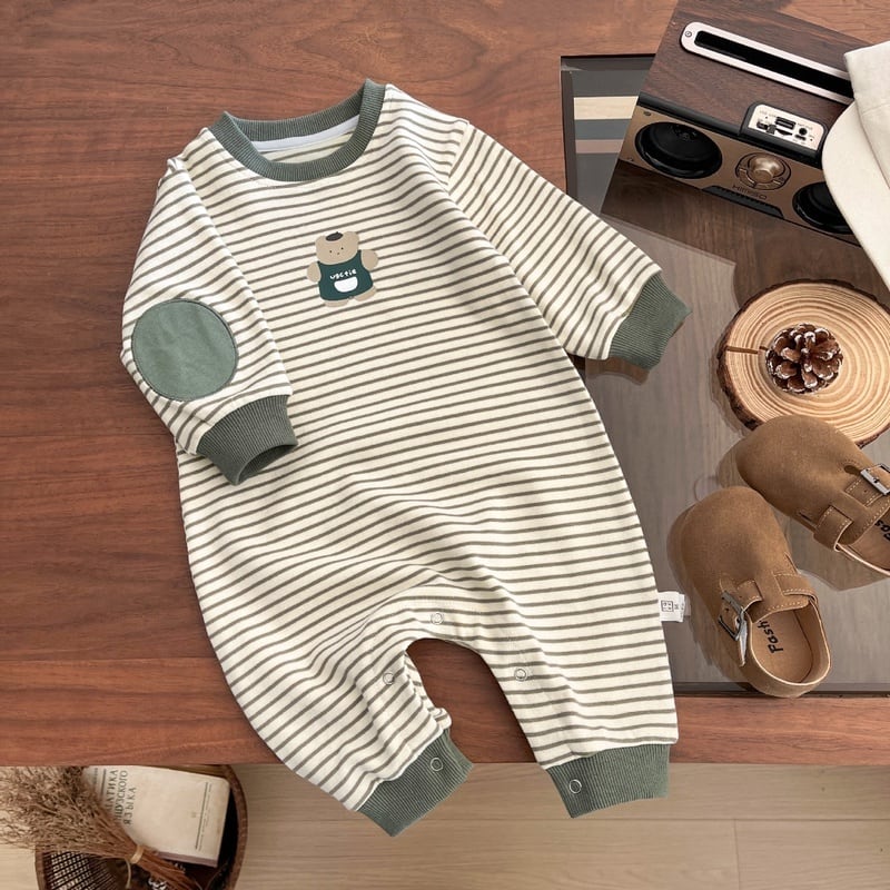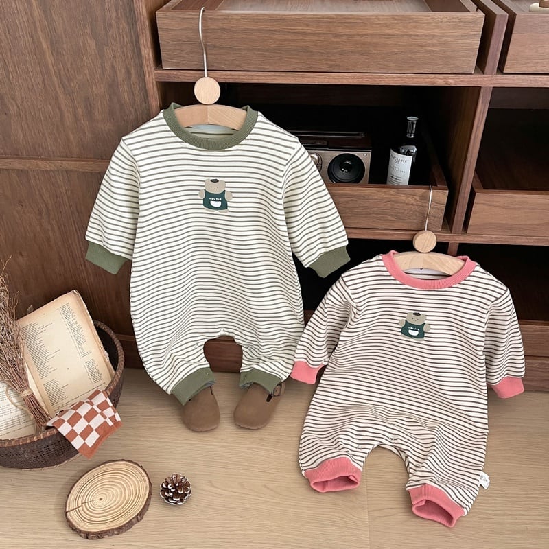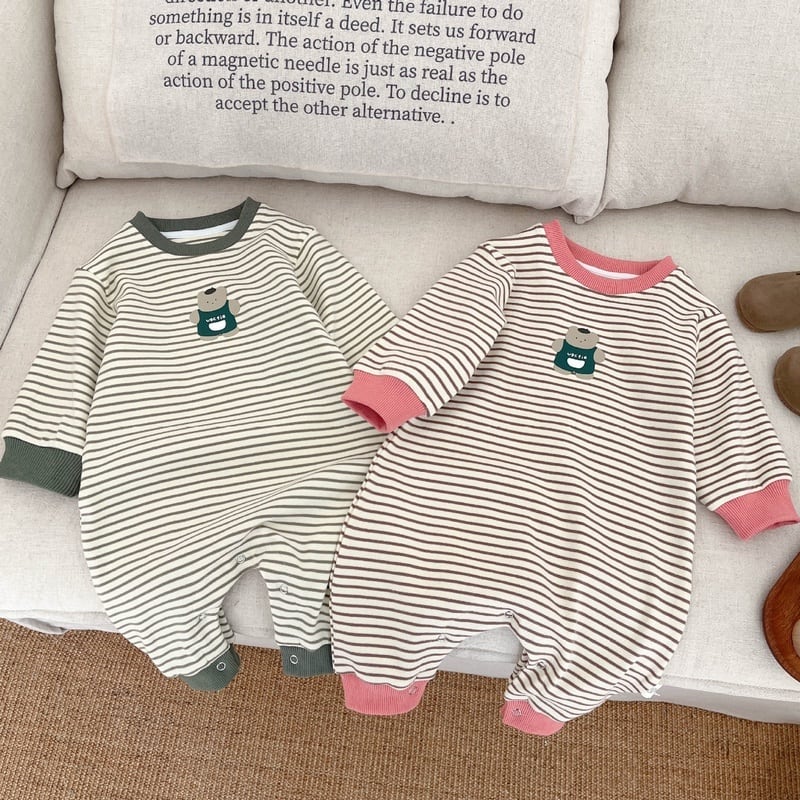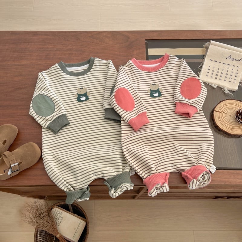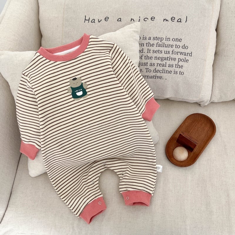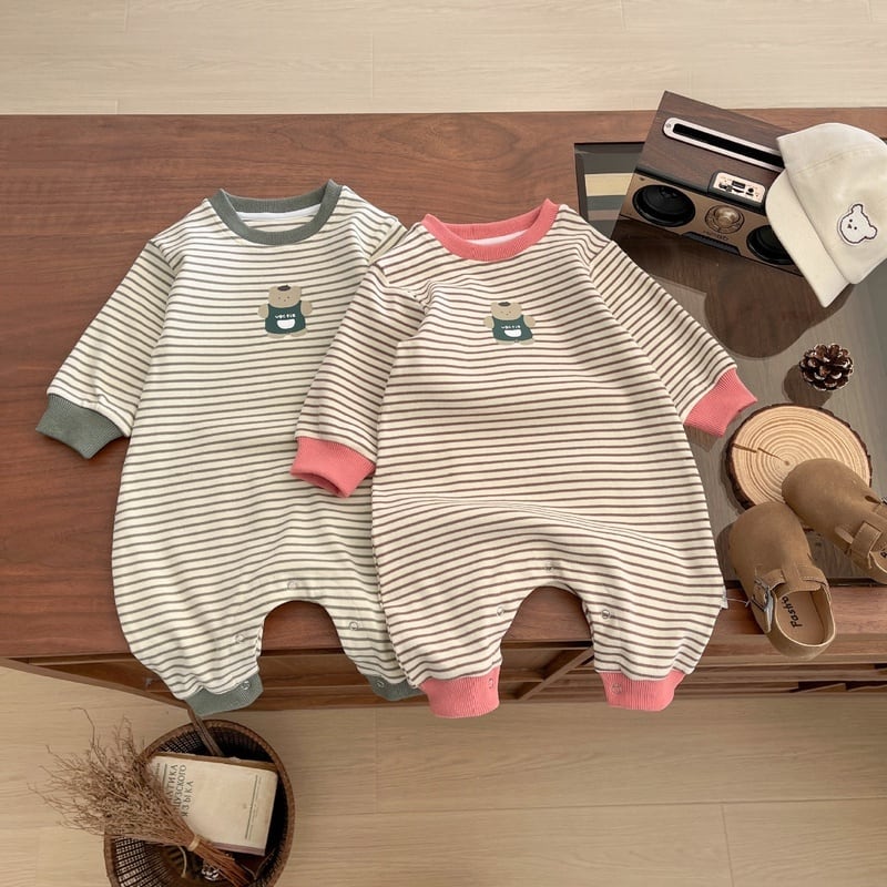 【BABY】クマ柄ボーダーロンパースSK051409
