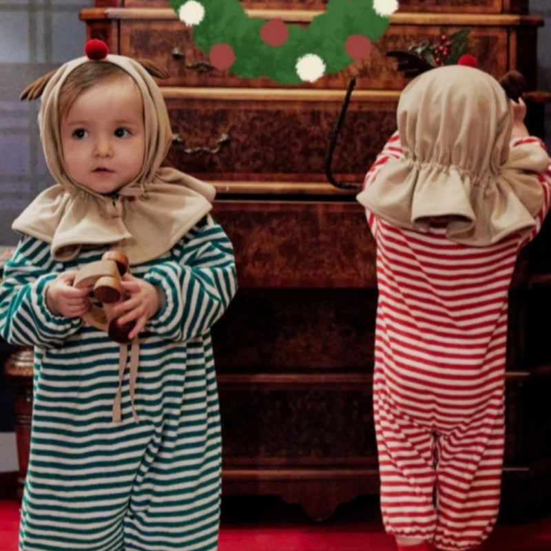 【BABY】クリスマスボーダーカバーオール、トナカイポンチョSK102817