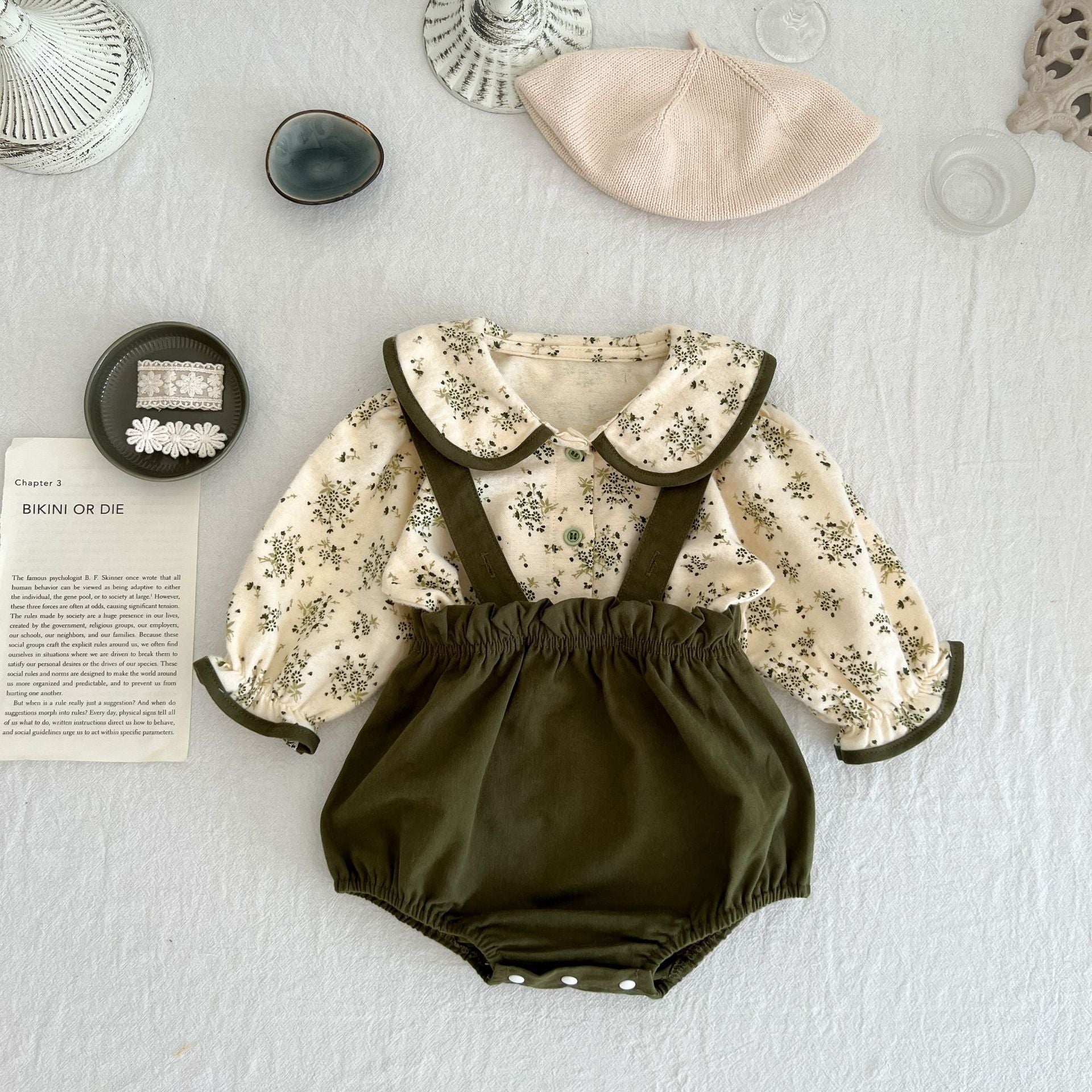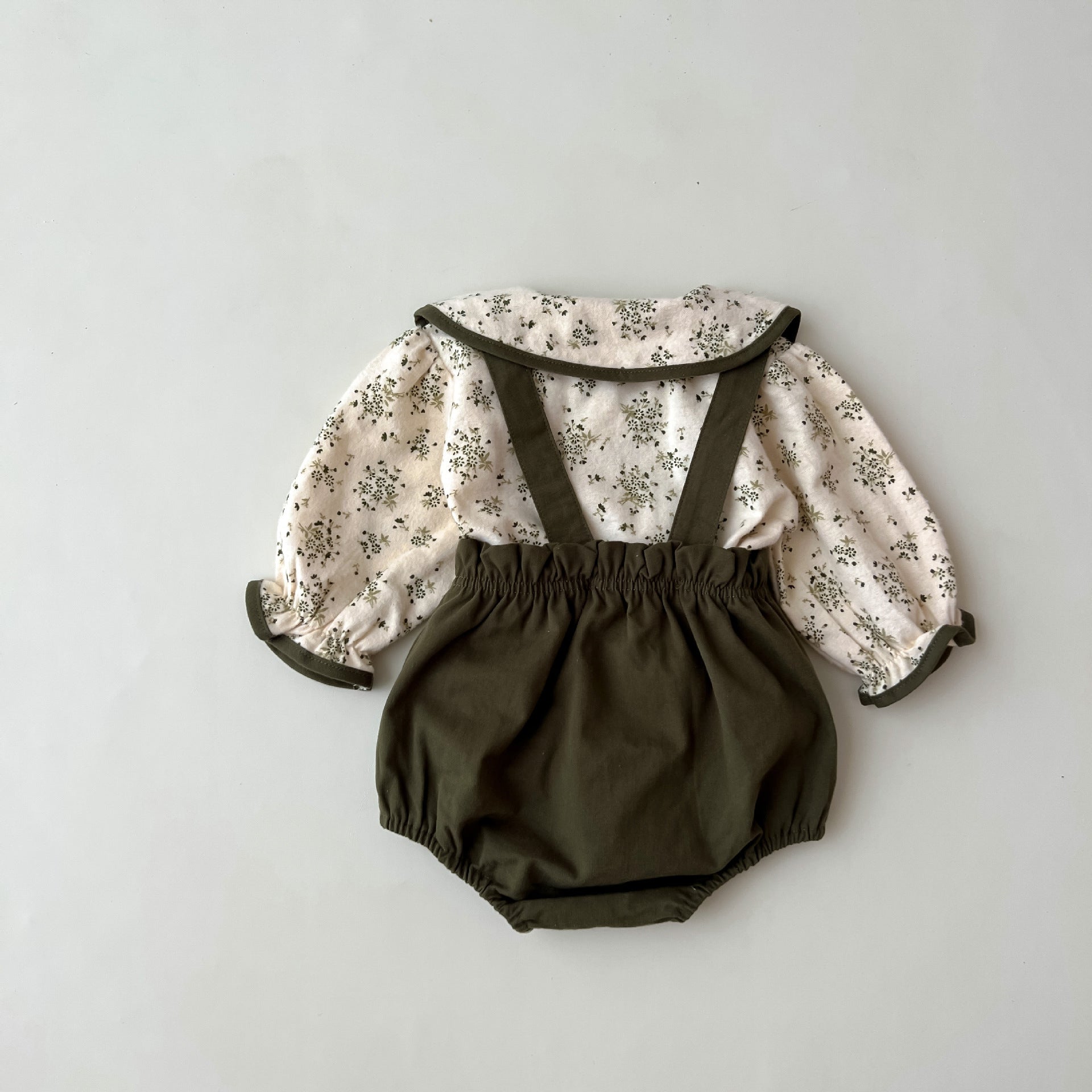 【BABY】グリーンサロペロンパース&ブラウスSK052706