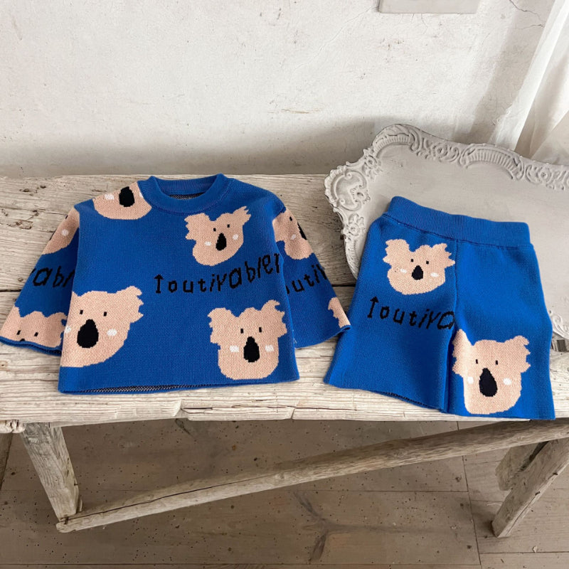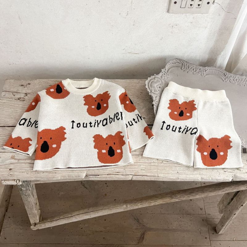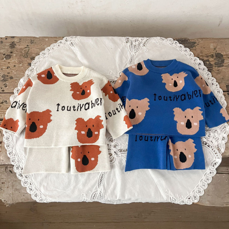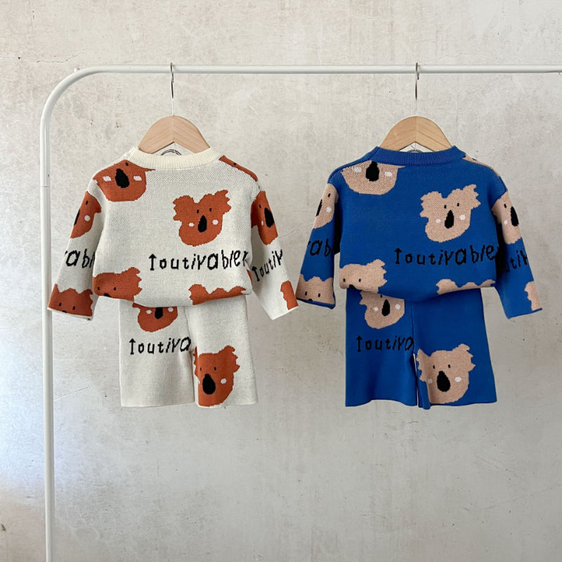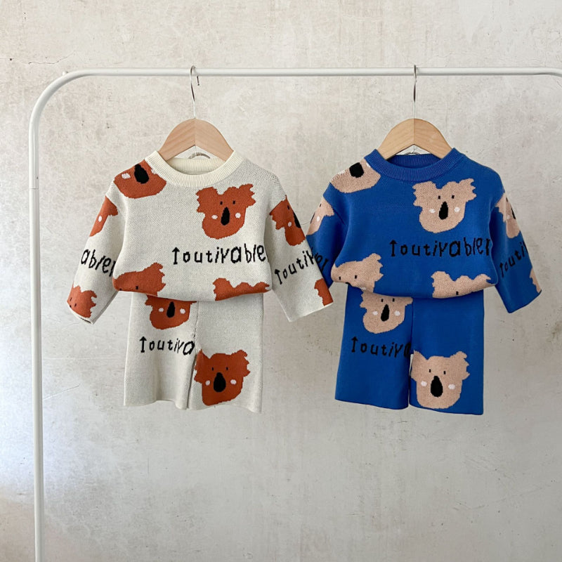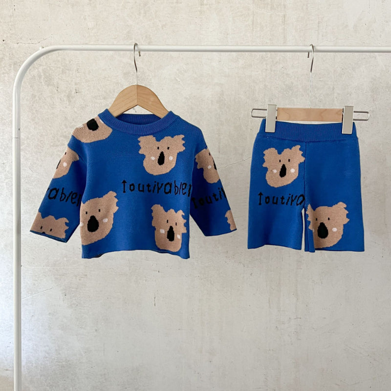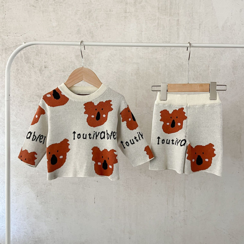 【BABY】コットンカートゥーン柄ニットセットアップSK100814