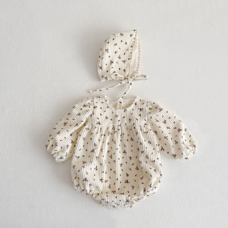 【BABY】コーデュロイパフ袖ロンパース&帽子SK100609