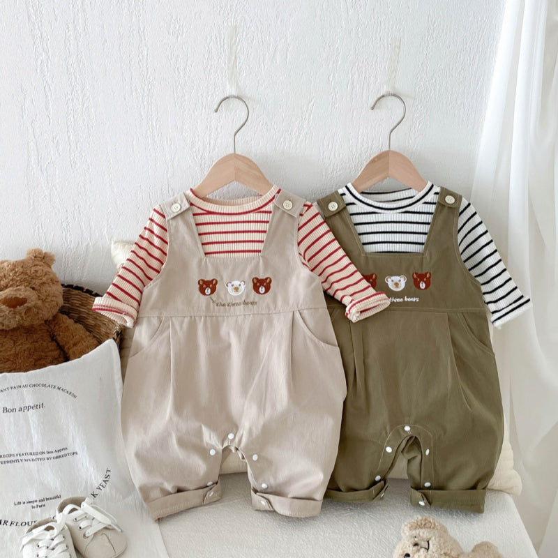 【BABY】スリー熊さんカジュアルサロペット、ベーシックボーダーTシャツSK032213