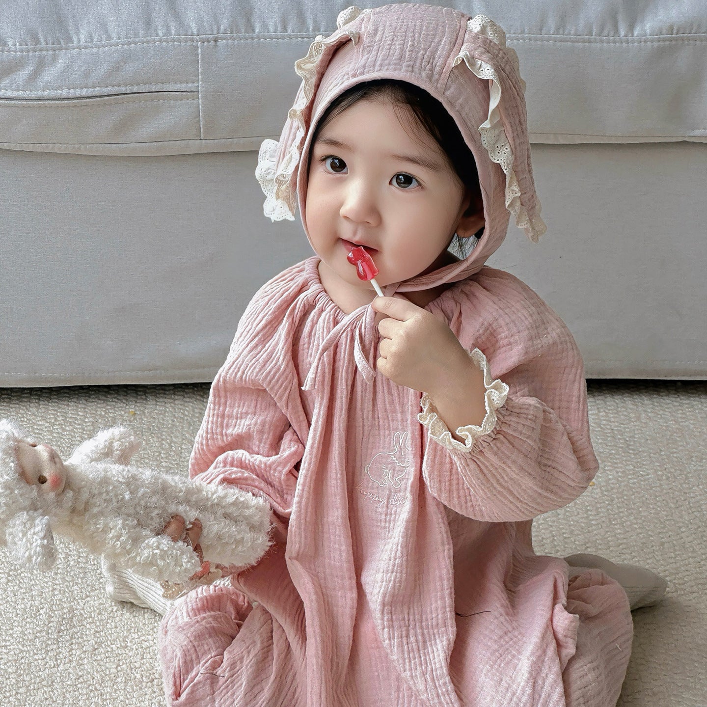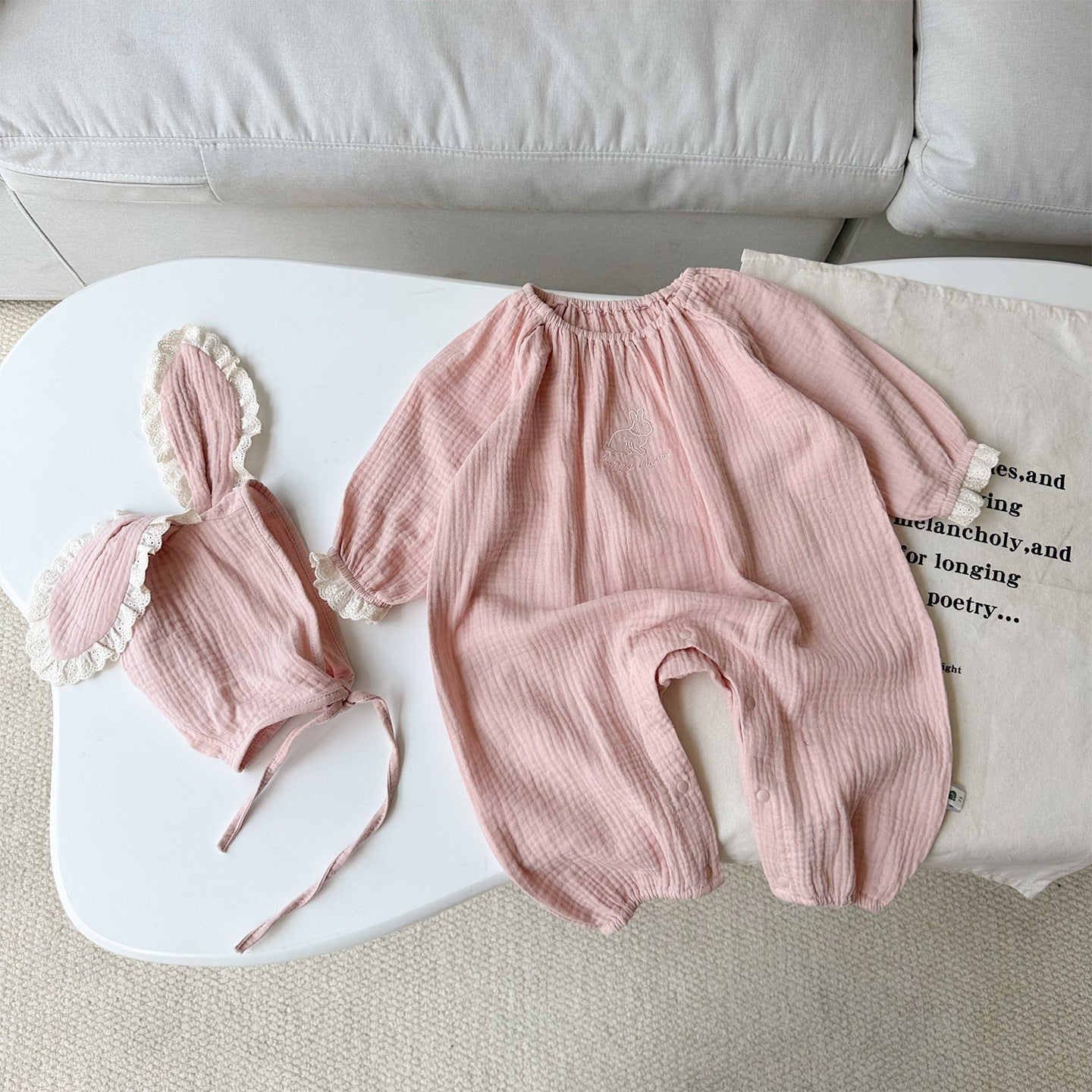 【BABY】ダブルガーゼカバーオール&うさ耳帽子SK100418